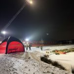 Auch das Aufblasbare Schnelleinsatzzelt vom Rüstwagen wurde aufgebaut und mit Licht und einer Zeltheißung ausgestattet. Das diente unter anderem dazu dass sich ausgekühlte Kameraden aufwärmen konnten oder diente als Umkleide für die Träger der Eisrettungsanzüge.