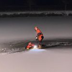 Außerdem wurde geübt, ohne Hilfe von außen, aus einem Wasserloch auf die Eisfläche zu gelangen.