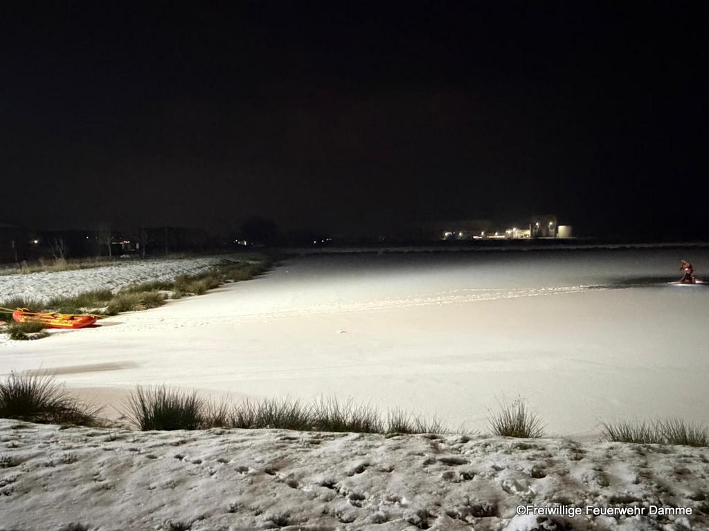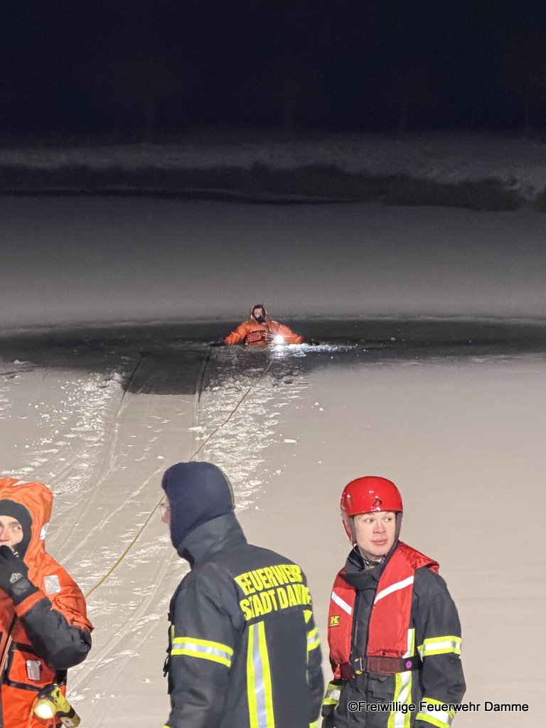 Zudem besitzt die Feuerwehr Damme auf ihrem Rüstwagen ein Rettungsboot. Damit können sich die Kameraden gefahrlos auf dem Eis oder auch auf angetauten oder brüchigen Eisflächen sicher bewegen.
