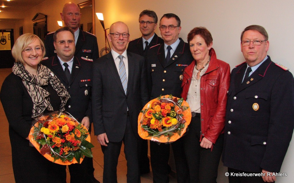 Zu einer Feierstunde, bei dem der stellv. Kreisbrandmeister Johannes Malik wegen Erreichung des Altersgrenze aus dem aktiven Dienst verabschiedet wurde und der designierte Nachfolger Hauptbrandmeister Udo Schwarz in das Amt eingeführt wurde, hatte der Landrat des Landkreises Vechta, Herbert Winkel, die Stadt-, Gemeinde- und Ortsbrandmeister des Landkreises Vechta ins Gasthaus Jansen in Vechta eingeladen.