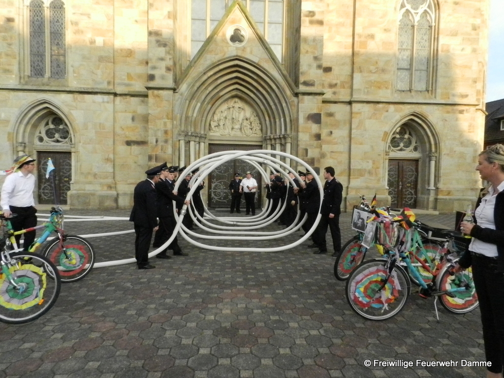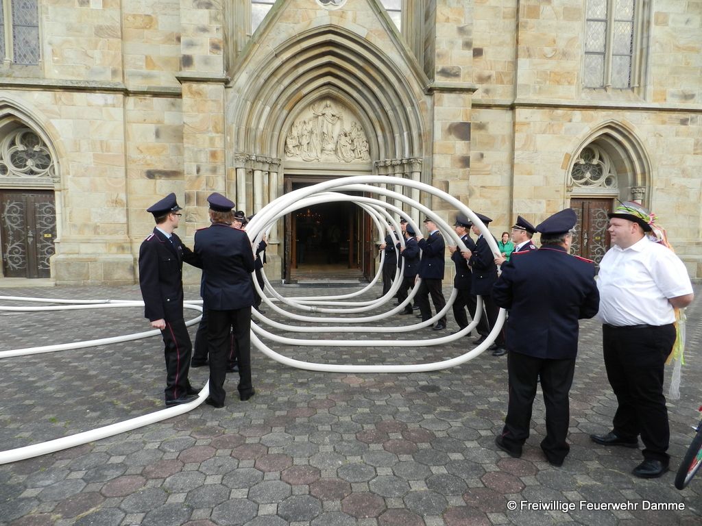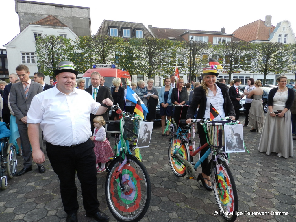 Am 18.04.2015 haben unser Feuerwehrkamerad Thomas Schmidt und seine Verlobte Kerstin im Standesamt zu Damme geheiratet. Aus diesem Grund wurde von den Kameraden der Feuerwehr Damme vor dem Rathaus mit einer Schlauchspirale Spalier gestanden. Außerdem wurde ihnen der St. Florian überreicht. Wir wünschen ihm und seiner Frau für die Zukunft alles Gute.