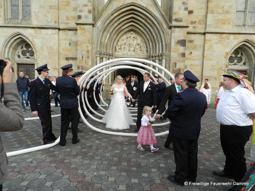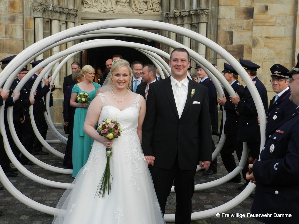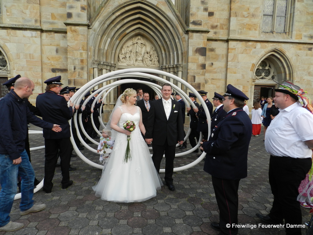 Am 10.10.2014 haben unser Feuerwehrkamerad und Zugführer Daniel Schnuck und seine Verlobte Melanie Stärk in der St. Viktor Kirche zu Damme geheiratet. Aus diesem Grund wurde von den Kameraden der Feuerwehr Damme vor der Kirche Spalier gestanden. Außerdem wurde ihnen der St. Florian überreicht. Wir wünschen ihm und seiner Frau für die Zukunft alles Gute.