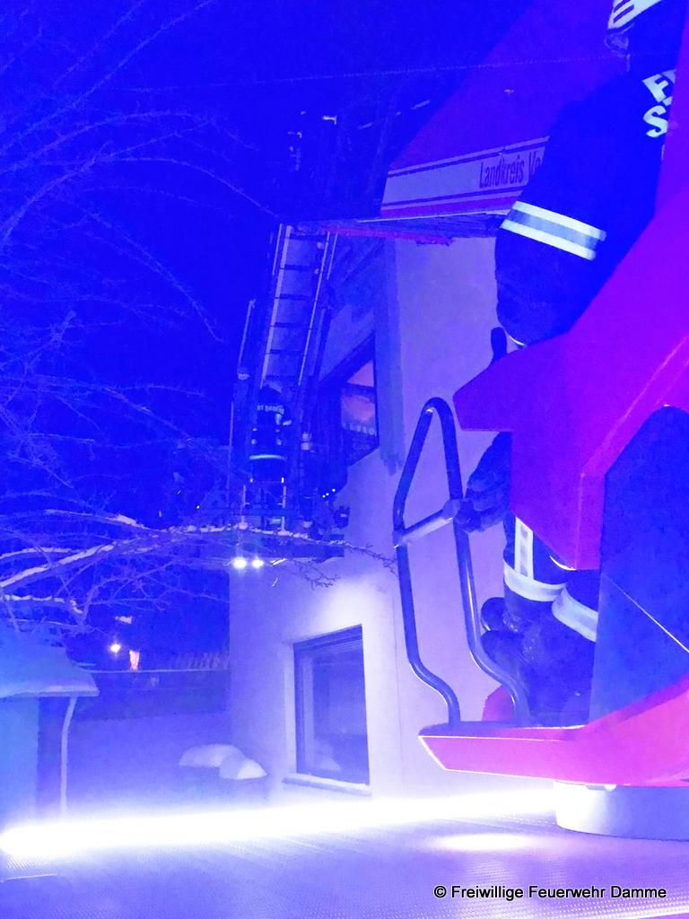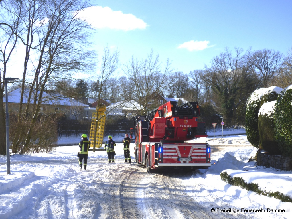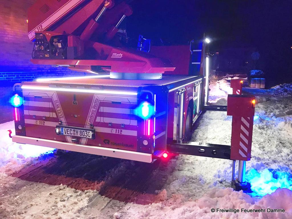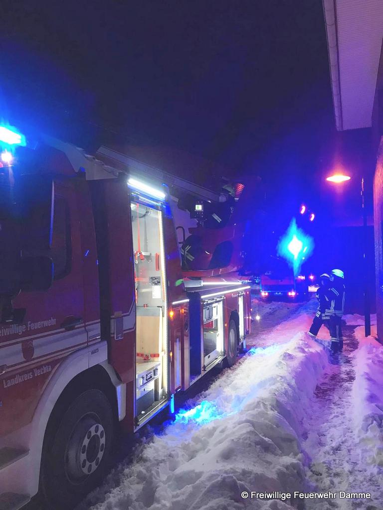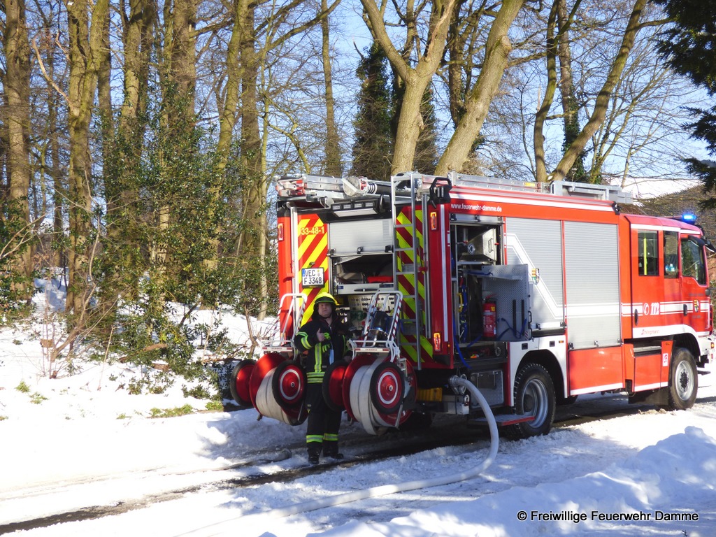 Im Einsatz: PKW Stv. OrtsBM, HLF 20, DLAK 23/12, TLF 16/25, RTW 2 Malteser Damme, RTW 3 Malteser Damme, NEF Malteser Damme, Polizei Damme