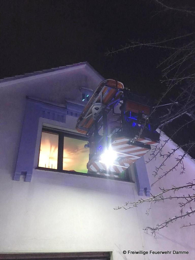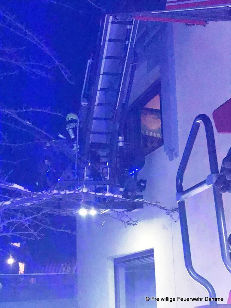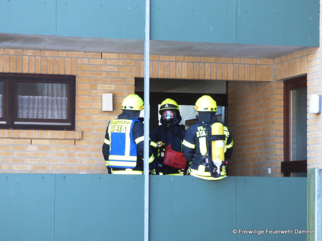 Um 13:37 wurde die Feuerwehr Damme zu einem gemeldeten Zimmerbrand, mit einer Person in Gefahr, in einem Mehrparteienhaus im Vogelsangweg in Damme alarmiert.