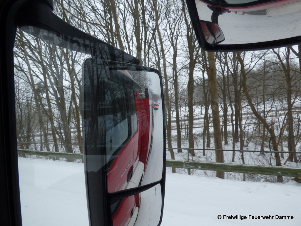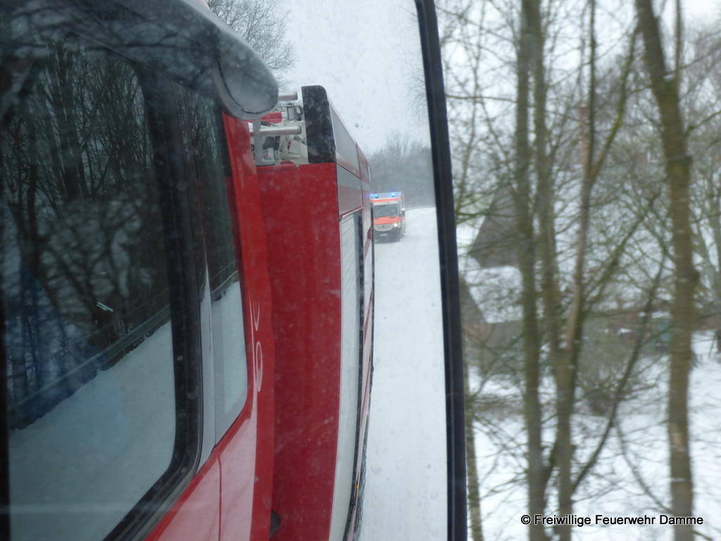 Im Einsatz: PKW OrtsBM, HLF 20, DLAK 23/12, TLF 16/25, TLF 20/40 SL, ELW 1, MTF mit Materialanhänger, FF Borringhausen, FF Osterfeine, Regierungsbrandmeister, AB-Atemschutz LK Vechta, RTW 1 Malteser Damme, RTW 3 Malteser Damme, RTW 1 Malteser Lohne, RTW 2 Malteser Lohne, RTW 1 Malteser Dinklage, NEF Malteser Damme, NEF Malteser Lohne, ELW Rettungsdienst Malteser LK Vechta, B-Dienst Malteser LK Vechta, A-Dienst Malteser LK Vechta, LNA LK Vechta, Ordnungsamt Stadt Damme, Polizei Damme