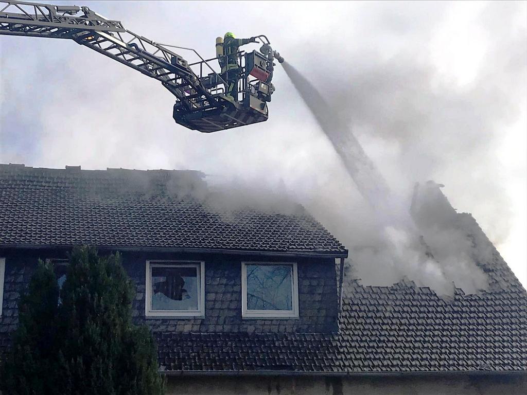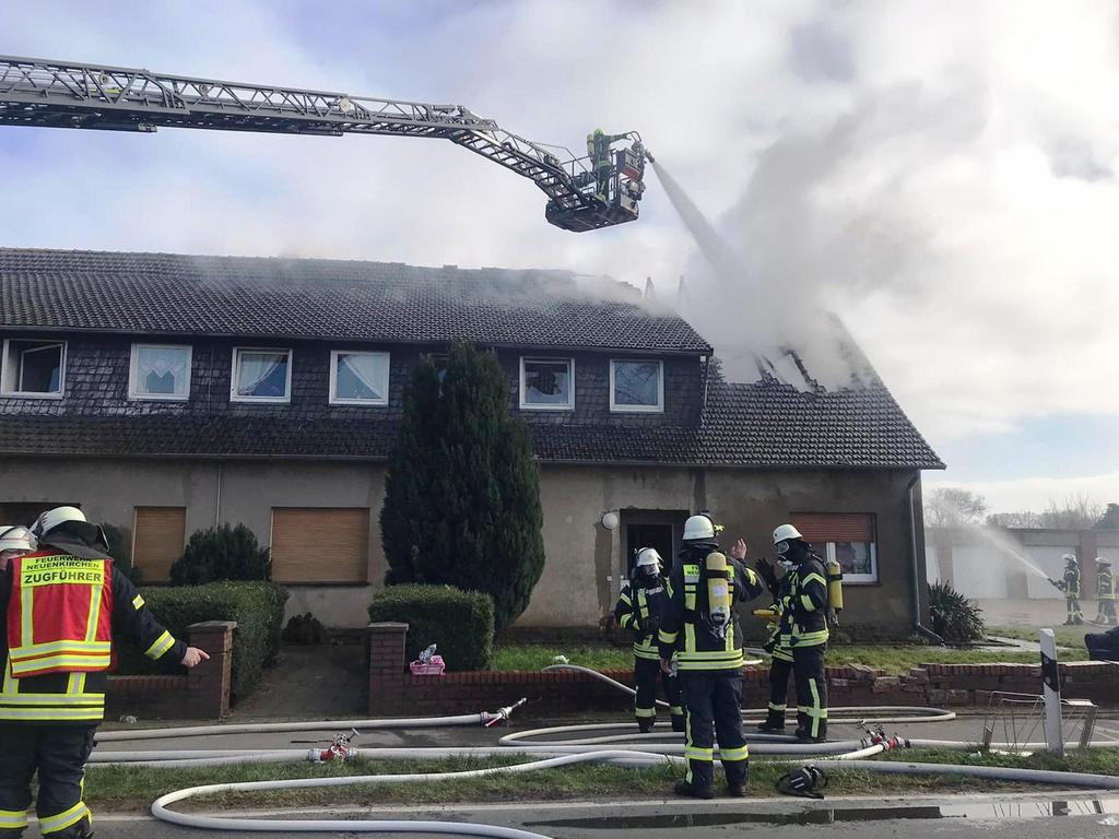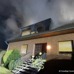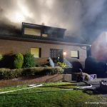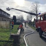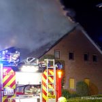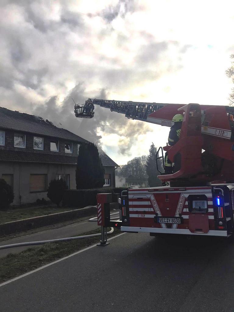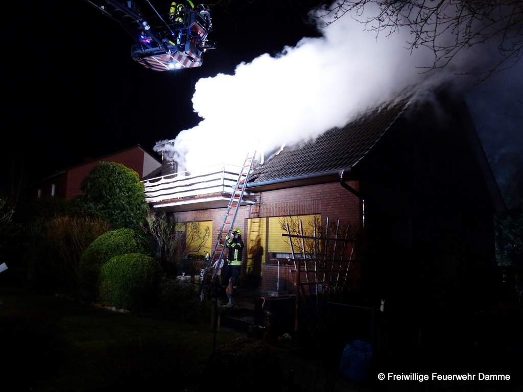 Beim Eintreffen der ersten Kräfte hatten die Bewohner glücklicherweise das Gebäude bereits unverletzt verlassen. Allerdings hatte das Feuer bereits auf den Dachstuhl übergegriffen. Daraufhin wurde vom Einsatzleiter umgehend auf Feuer 3 erhöht und die Feuerwehren Borringhausen und Osterfeine nachalarmiert. Um den Dachstuhlbrand von zwei Seiten effektiv zu bekämpfen, wurde zusätzlich die Drehleitereinheit der Feuerwehr Lohne alarmiert.