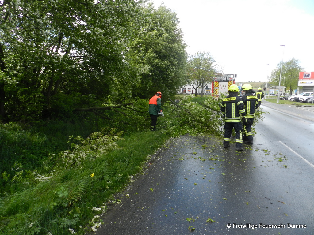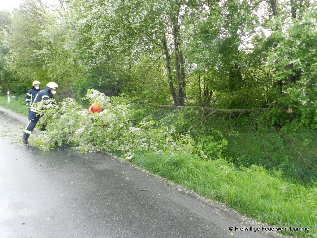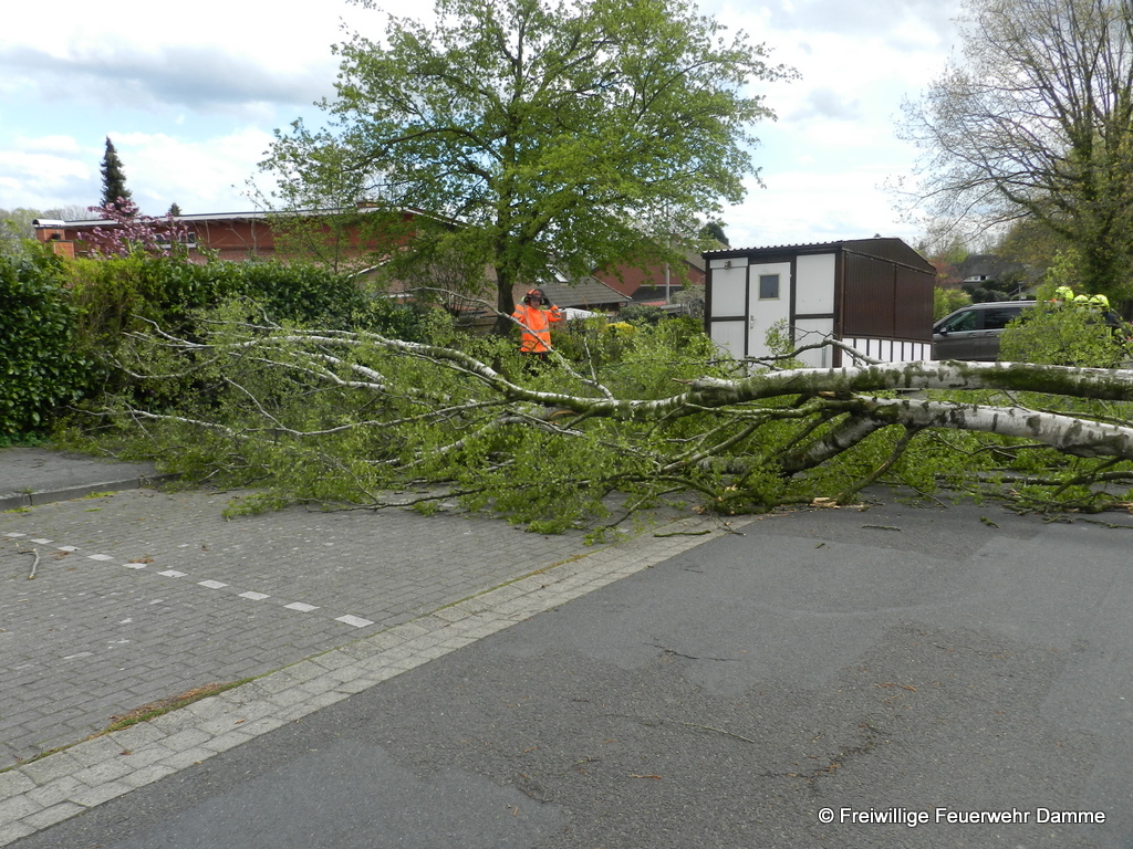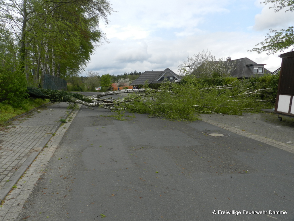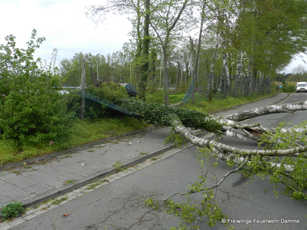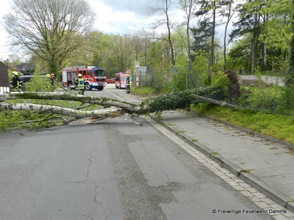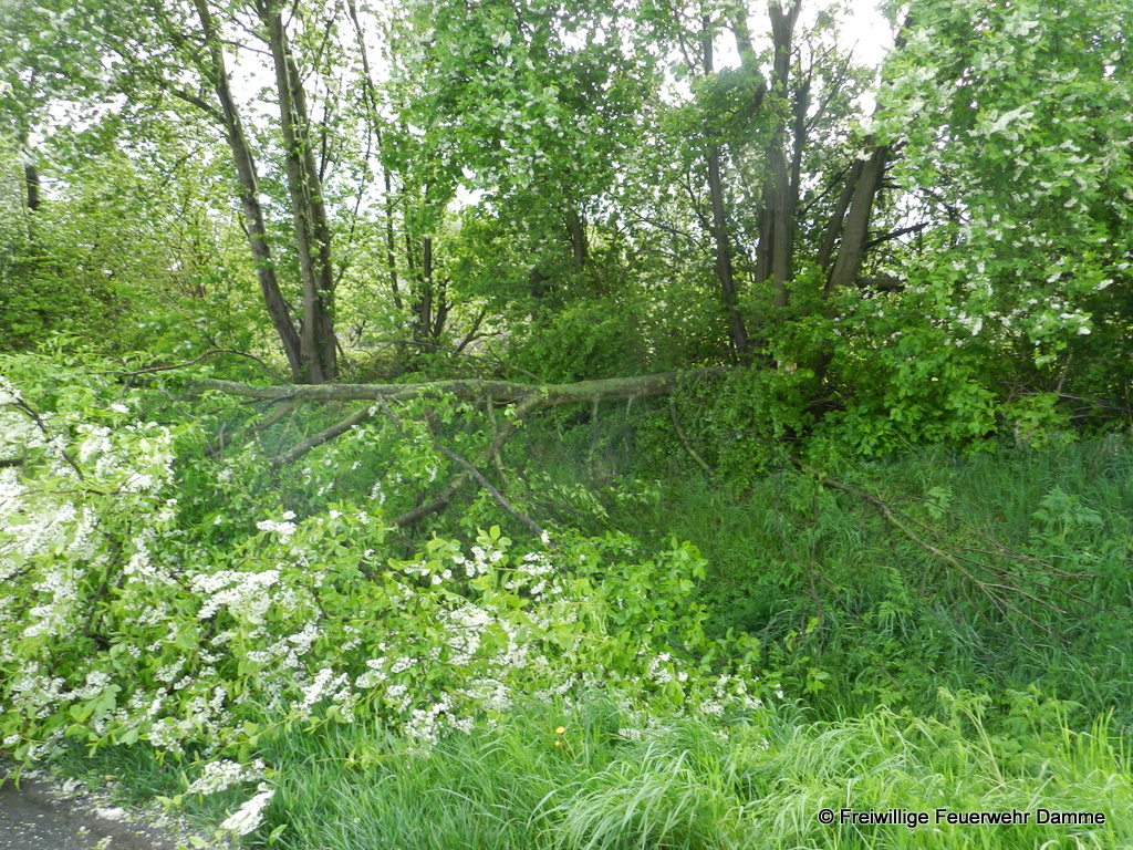 Um 19:59 wurde die Feuerwehr Damme zu einer technischen Hilfeleistung in Ossenbeck alarmiert. Auf der K 277 von Ossenbeck nach Neuenkirchen drohte ein größerer Baum umzustürzen.