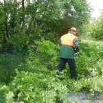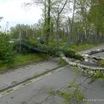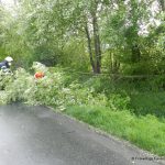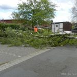Nach dem Fällen wurde der Baum noch zerlegt und die Straße gereinigt. Dabei wurden die Kameraden tatkräftig von benachbarten Landwirten mit Schleppern und Radladern unterstützt.