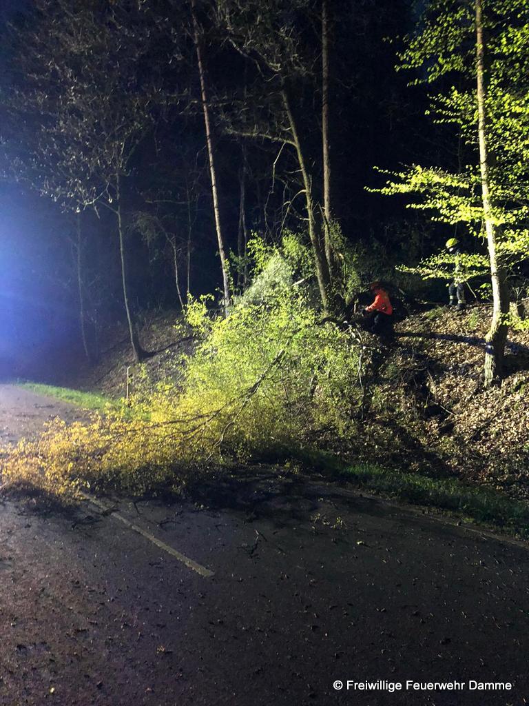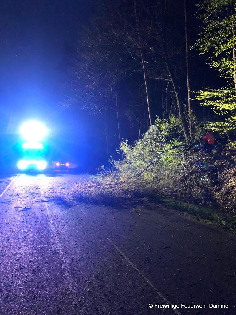 Auch dort lag ein Baum quer zu Fahrbahn und blockierte diese zur Hälfte.