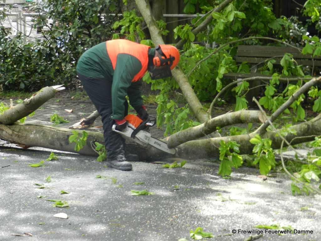 Mittels Motorkettensäge wurde auch diese Gefahrenstelle von der Feuerwehr rasch beseitigt.