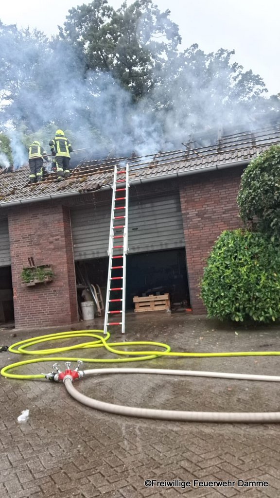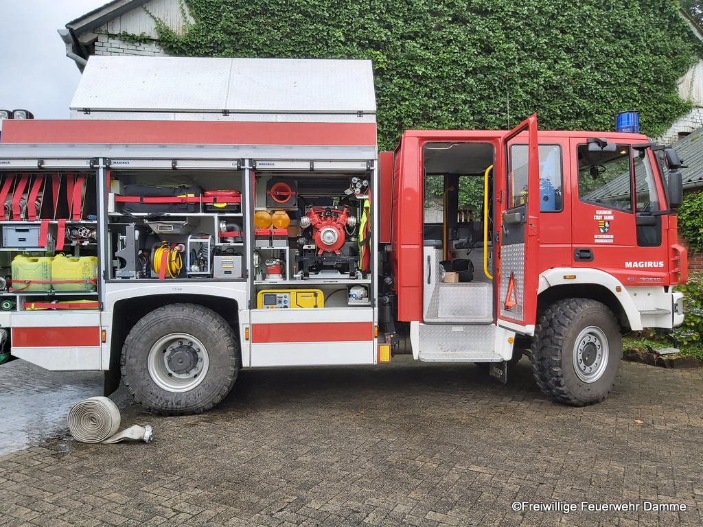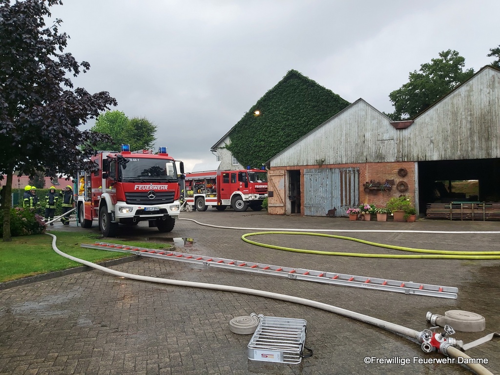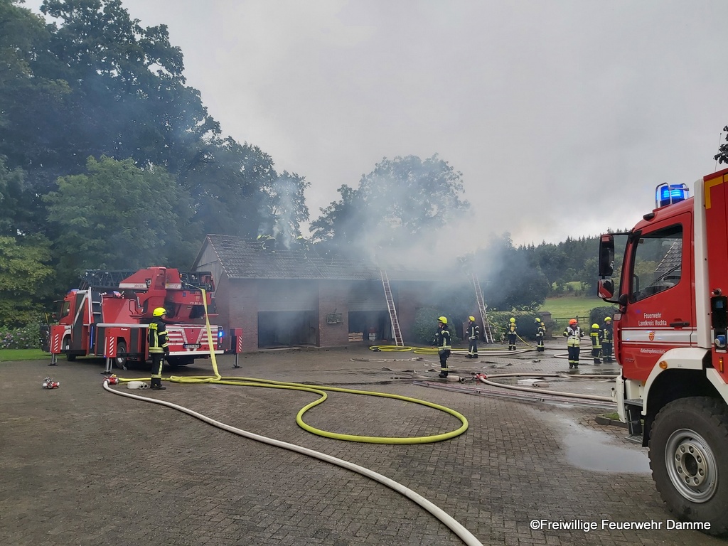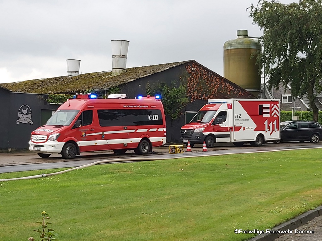 Im Einsatz: MTF, FF Bakum, FF Vechta, FF Langförden, FF Lohne, FF Dinklage, FF Holdorf, FF Fladderlohausen, ELW 2 Container, LK Vechta, GW Mess LK Vechta, AB – Umweltschutz LK Vechta, AB – Rüst LK Vechta, AB-Mulde LK Vechta, GW – Logistik 2 LK Vechta, Drohnengruppe LK Vechta, Pressesprecher Kreisfeuerwehr LK Vechta, RTW 1 Malteser Vechta, Polizei