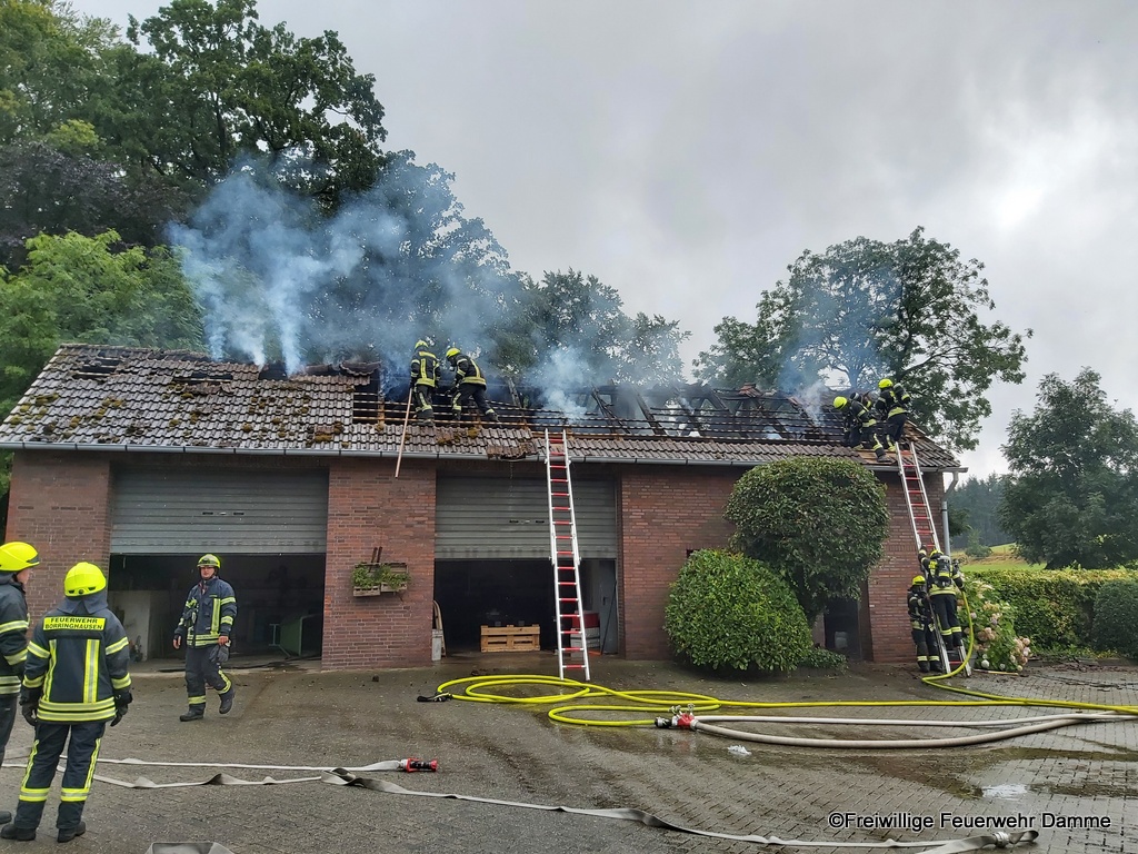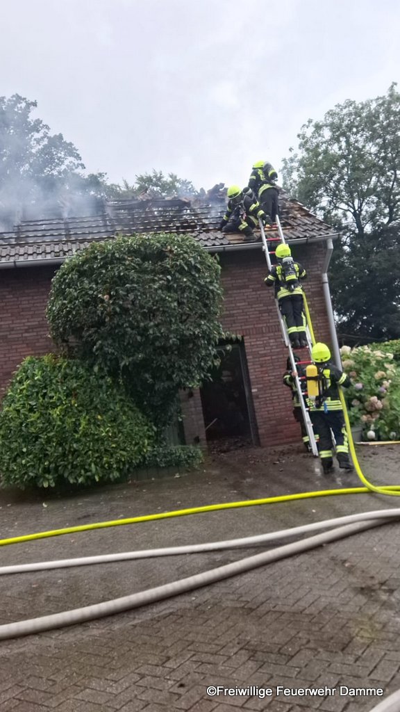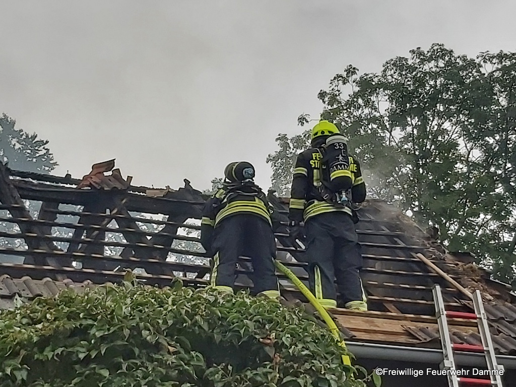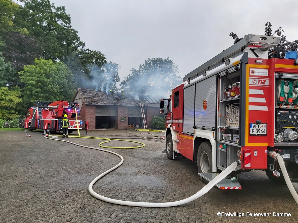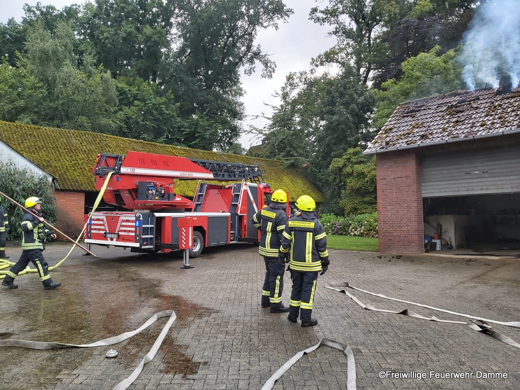 Im Einsatz: MTF, FF Bakum, FF Vechta, FF Langförden, FF Lohne, FF Dinklage, FF Holdorf, FF Fladderlohausen, ELW 2 Container, LK Vechta, GW Mess LK Vechta, AB – Umweltschutz LK Vechta, AB – Rüst LK Vechta, AB-Mulde LK Vechta, GW – Logistik 2 LK Vechta, Drohnengruppe LK Vechta, Pressesprecher Kreisfeuerwehr LK Vechta, RTW 1 Malteser Vechta, Polizei