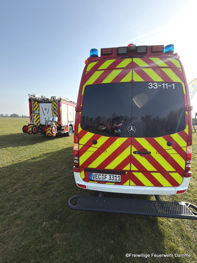 Die Einsatzkräfte der Feuerwehr Damme gingen an der Einsatzstellen in Bereitstellung, brauchten aber nicht mehr Tätig werden.