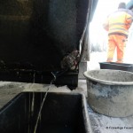 Der austretende Kraftstoff drohte in die Kanalisation zu fließen. Von der Feuerwehr wurden die Kanaleinläufe abgedichtet und somit eine Umweltverschmutzung verhindert. Zudem wurde der auslaufende Kraftstoff aufgefangen und der leckgeschlagene Tank mittels einer Spezialknete provisorisch abgedichtet. Der bereits ausgelaufene Diesel wurde mittels Bindemittel aufgenommen.