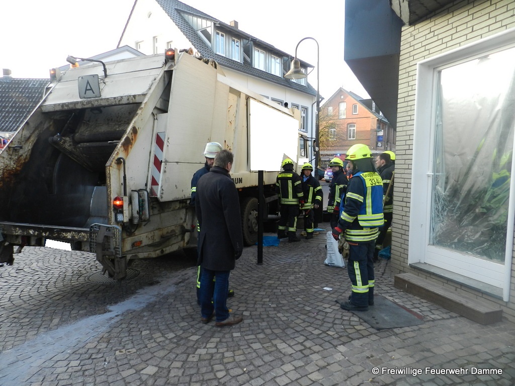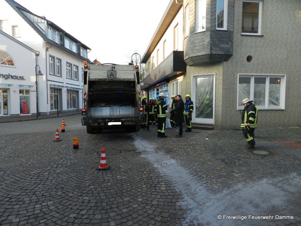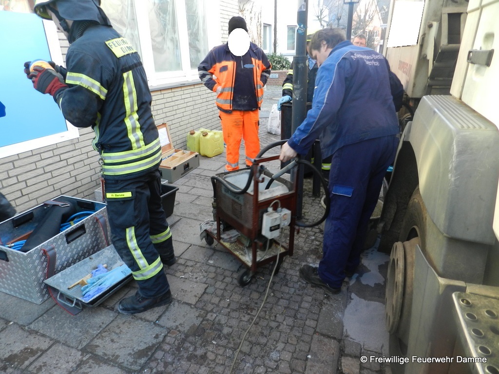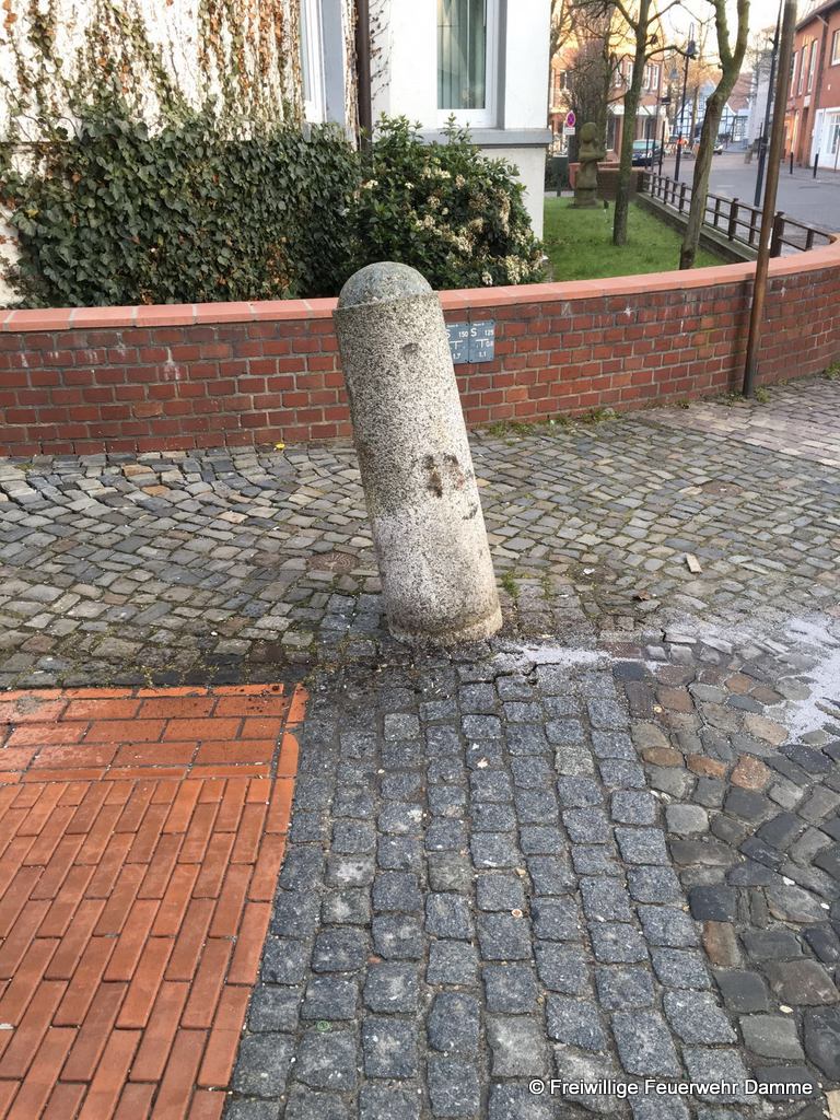 Um 07:26 wurde die Feuerwehr Damme zu einer technischen Hilfeleistung auf der Großen Straße alarmiert. Beim abbiegen von der Bahnhofstraße in die Große Straße streifte ein LKW einen Poller und beschädigte sich dabei den Dieseltank.