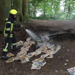 Gerade erst wieder eingerückt wurde die Feuerwehr Damme um 20:16 erneut alarmiert. Diesmal zu einem Brandeinsatz. Im Hofe, hinter dem Famila Markt, in dem dortigen Waldstück am alten Bahndamm, hatten unbekannte mehrere Zeitungsstapel angezündet. Durch einen Trupp konnte das Feuer allerdings zügig abgelöscht und eine Ausbreitung auf das Waldstück verhindert werden.