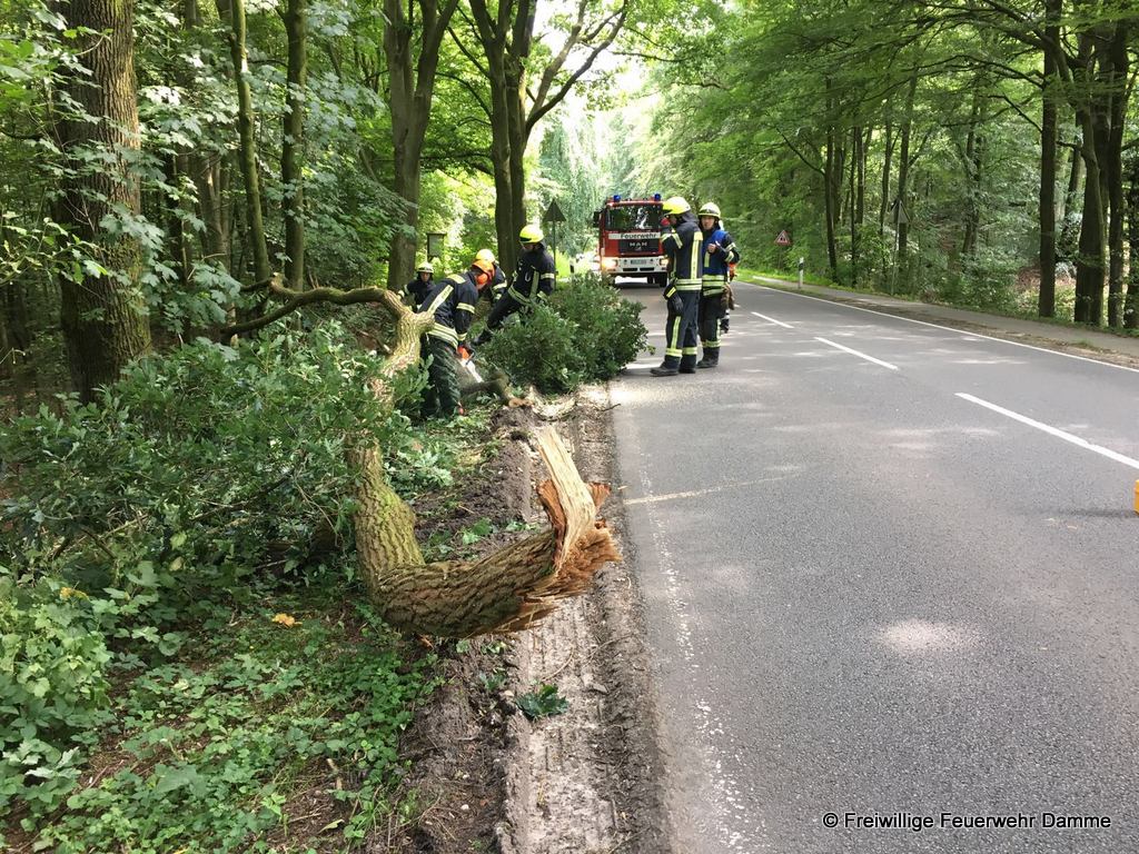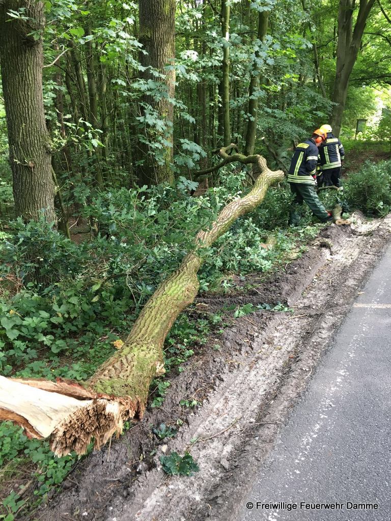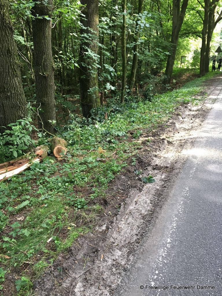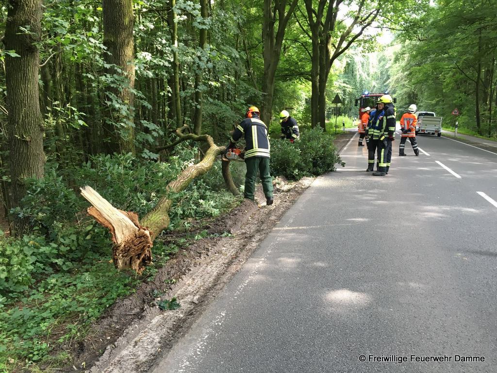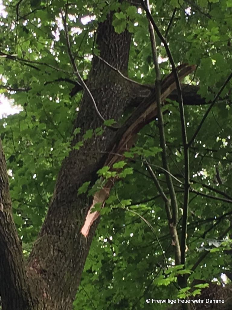 Um 15:48 wurde die Feuerwehr Damme zu einer technischen Hilfeleistung auf der Steinfelder Straße alarmiert. Kurz hinter dem Altenheim Maria Rast war ein größerer Ast von einem Baum abgebrochen und lag neben der Fahrbahn. Mittels Motorkettensägen wurde der Ast zerlegt und etwas weiter abseits der Straße verbracht.