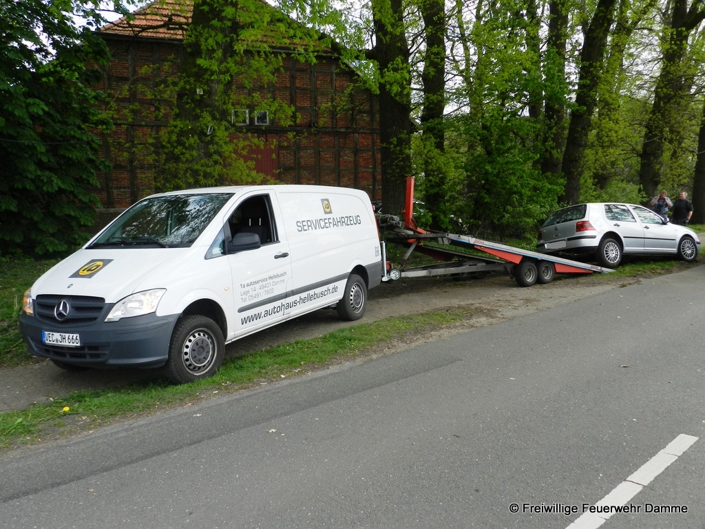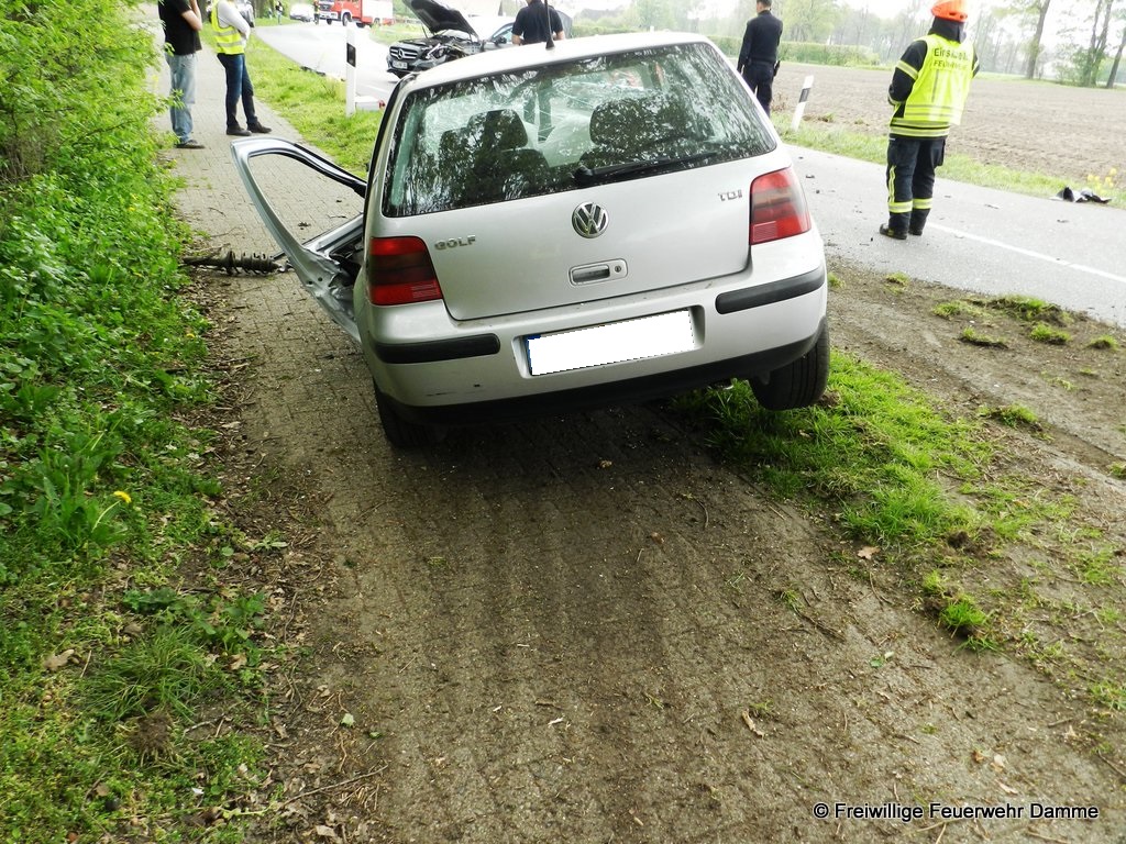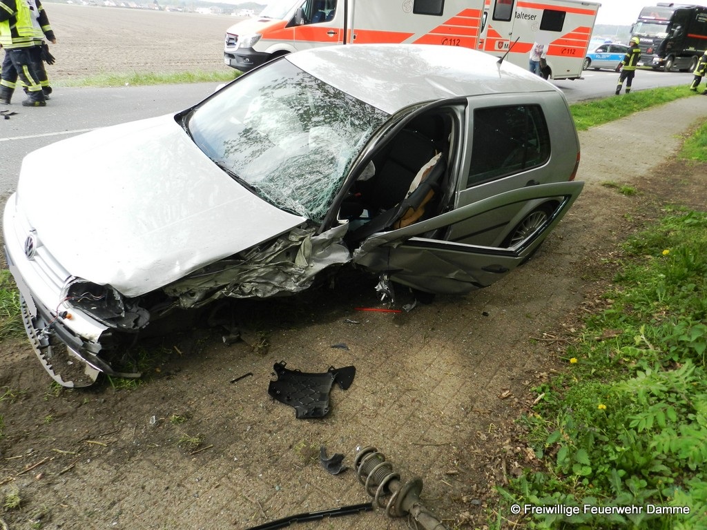 Um 11:55 wurde die Feuerwehr Damme, zusammen mit den Feuerwehren Borringhausen und Osterfeine, zu einem schweren Verkehrsunfall mit eingeklemmten Personen auf der Hufeisenstraße in Sierhausen alarmiert.