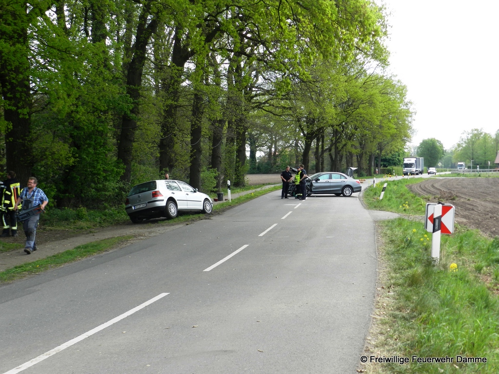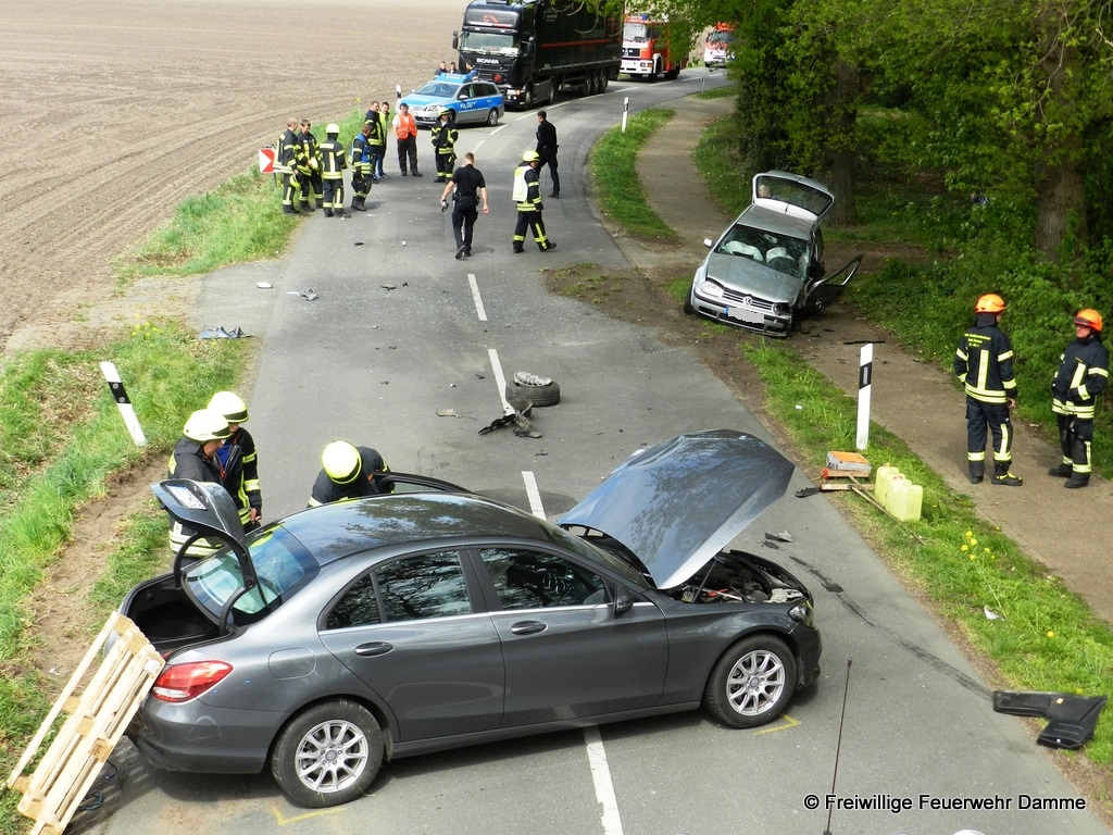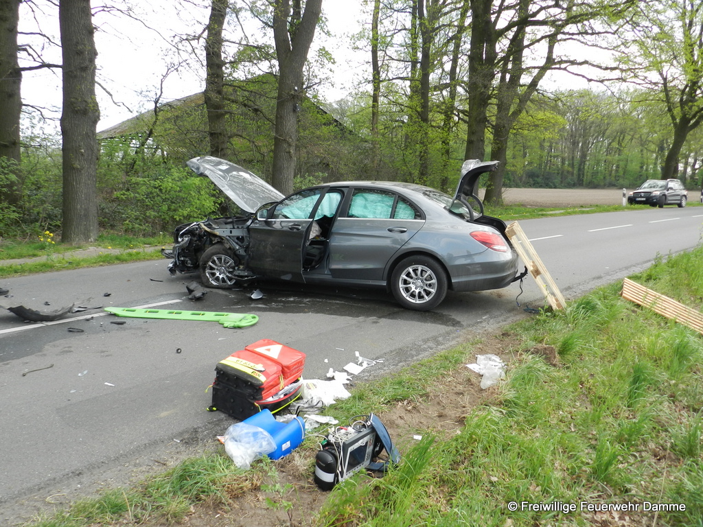 Die Feuerwehr Damme unterstützte den Rettungsdienst bei der Versorgung der Patienten und sicherte die Einsatzstelle ab. Auf Grund des Verletzungsmusters des Mercedes Fahrers wurde zum Transport ein Rettungshubschrauber angefordert. Dieser flog den Patienten, nach der Erstversorgung durch den Rettungsdienst, zum Städtischen Klinikum nach Osnabrück.