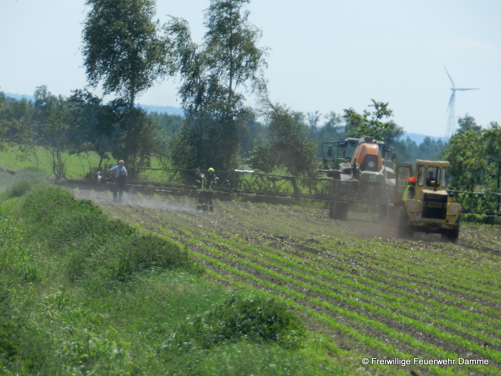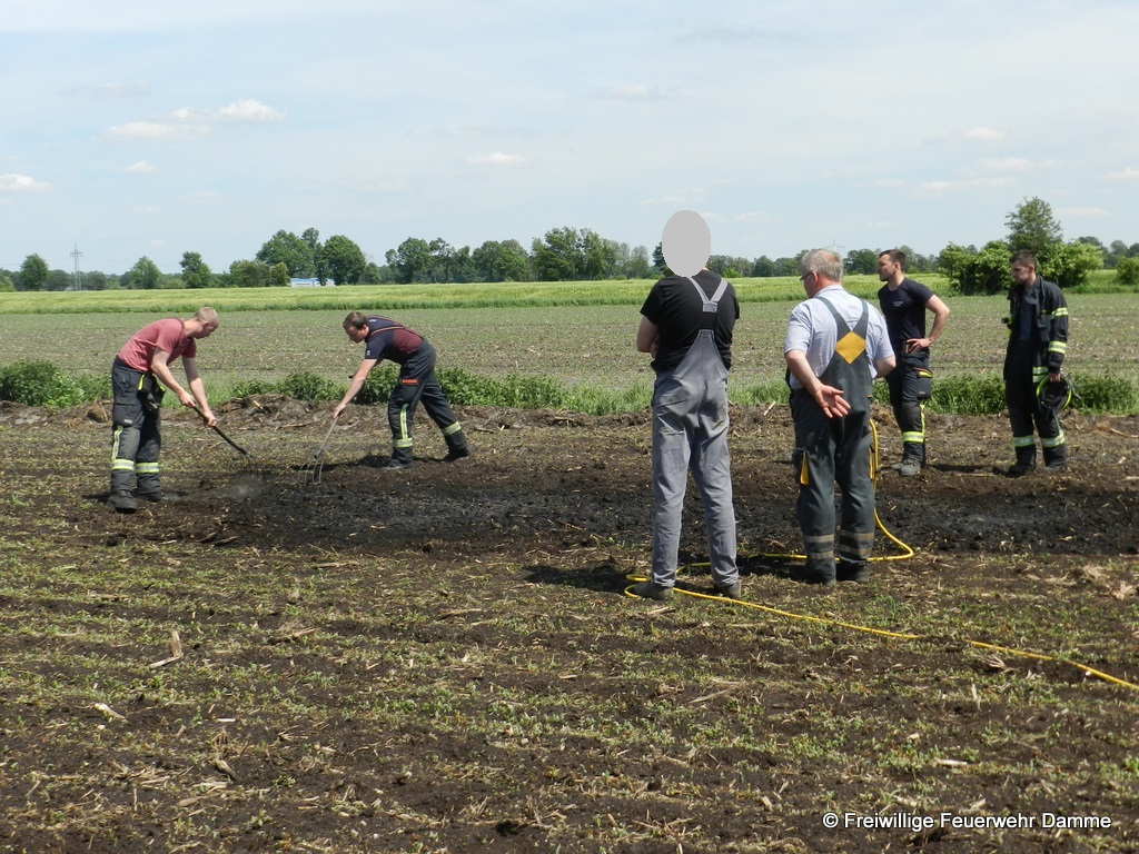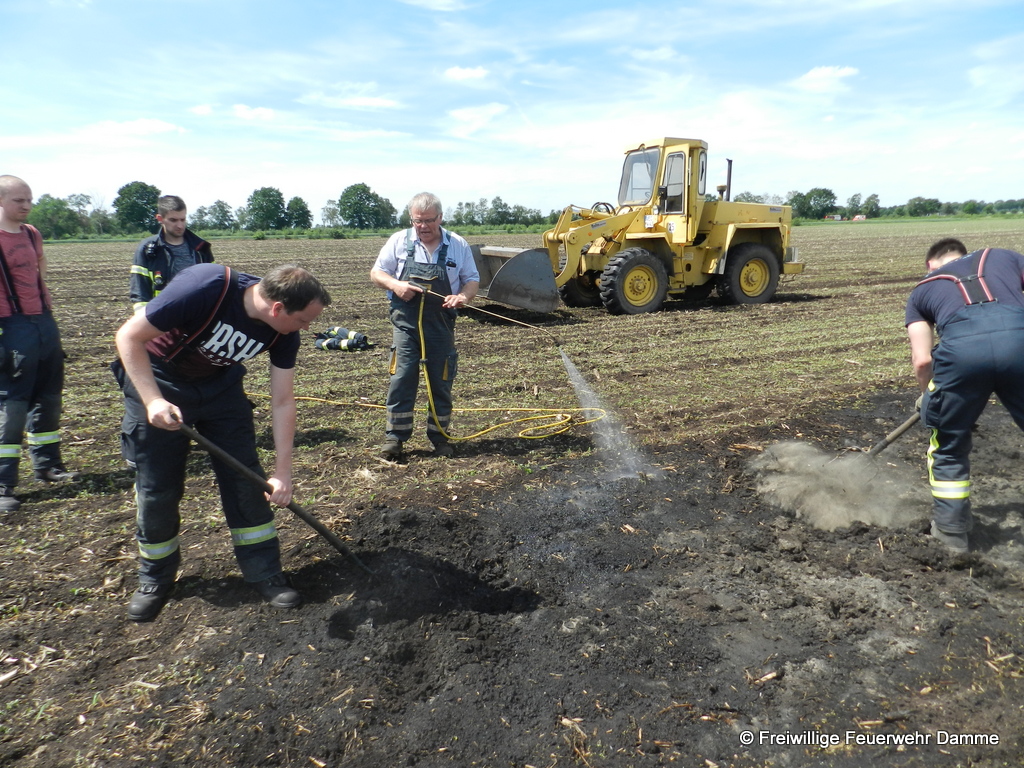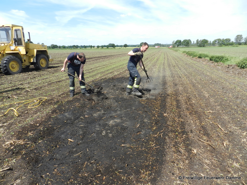 Auf einem Feld im Rottinghauser Moor, hinter dem Flugplatz Damme, war es zu einem Flächenbrand gekommen. Auf einer Fläche von ca. 5 x 10 Metern brannte der torfhaltige Boden. Entdeckt wurde das Feuer zufällig vom Stv. OrtsBM Borringhausen, welcher auf einem benachbarten Feld am arbeiten war.