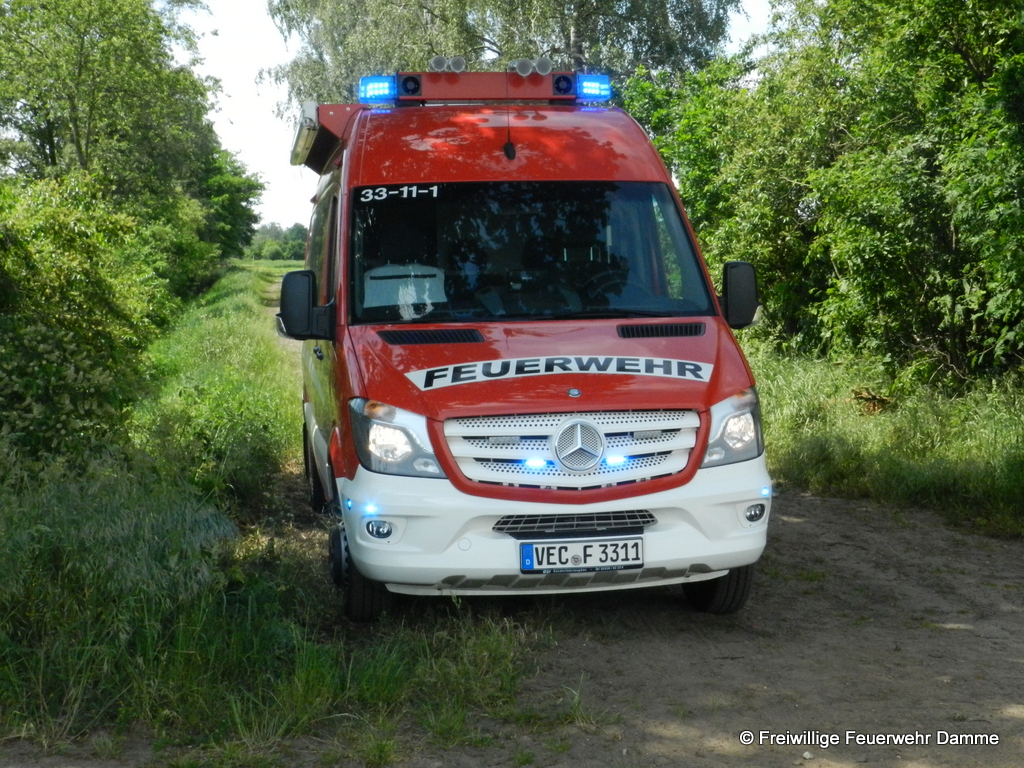 Im Einsatz: PKW Stv. OrtsBM, TLF 16/25, TLF 20/40 SL, LF 16 TS, ELW 1, MTF mit Materialanhänger, RTW 1 Malteser Damme.