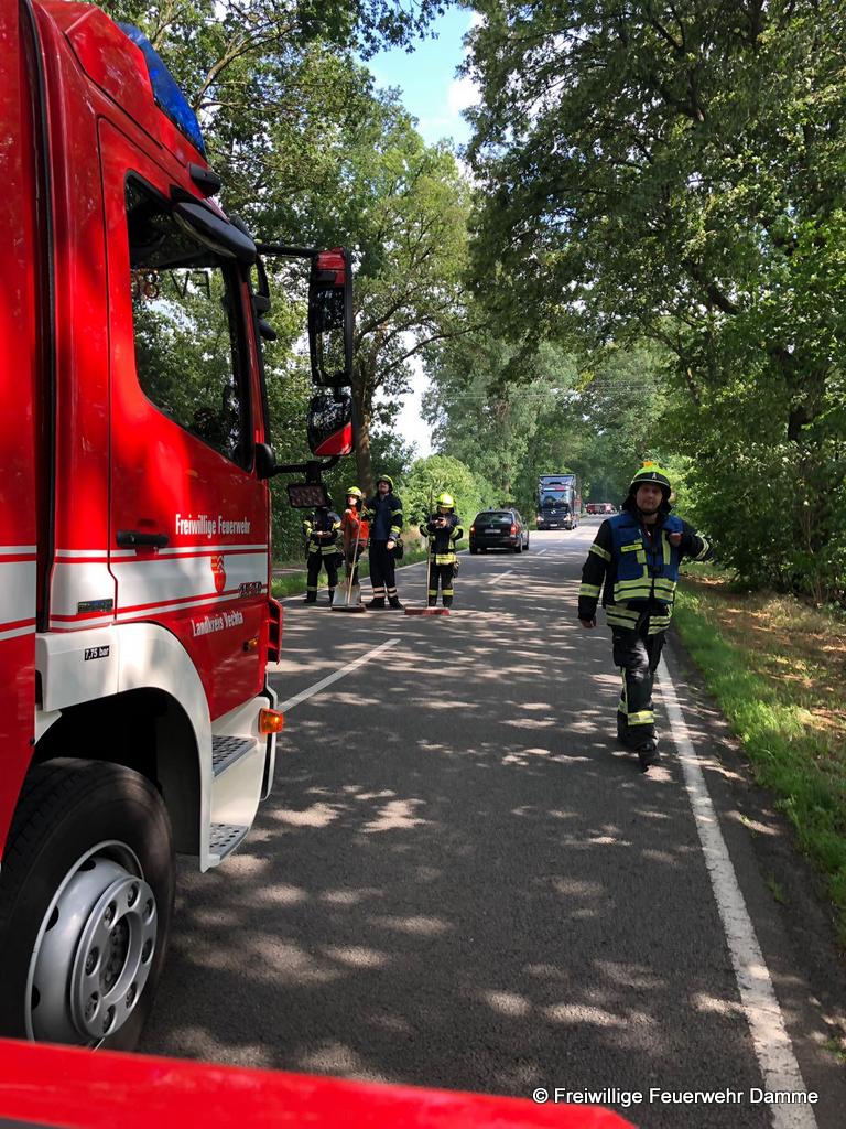 Im Einsatz: PKW OrtsBM, DLAK 23/ 12, LF 16 TS, ELW 1, Polizei Damme