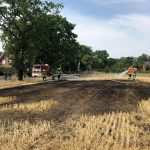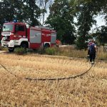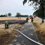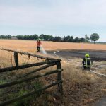 Auf einem Feld an der Hufeisenstraße brannte eine Fläche von ca. 10 x 10 Metern. Das Feuer konnte zügig abgelöscht werden. Um ein erneutes Aufflammen zu verhindern wurde die Brandstelle noch ausgiebig gewässert. Vom Besitzer wurde die Fläche anschließen noch umgegrubbert.