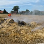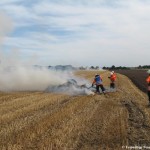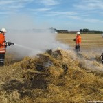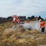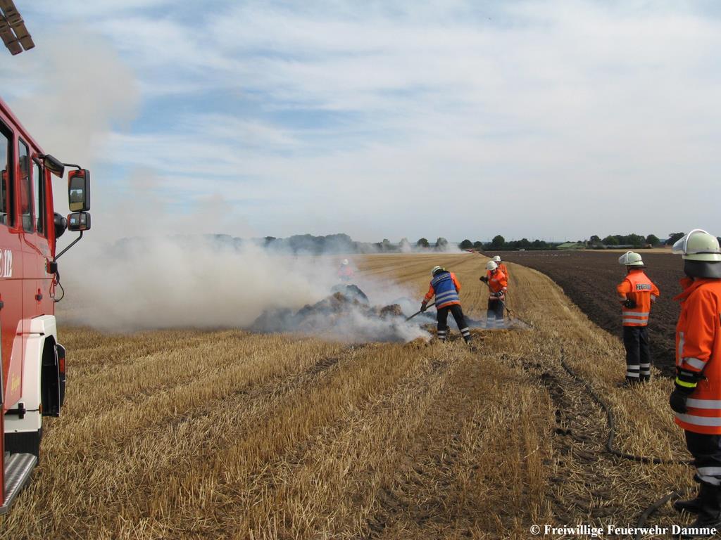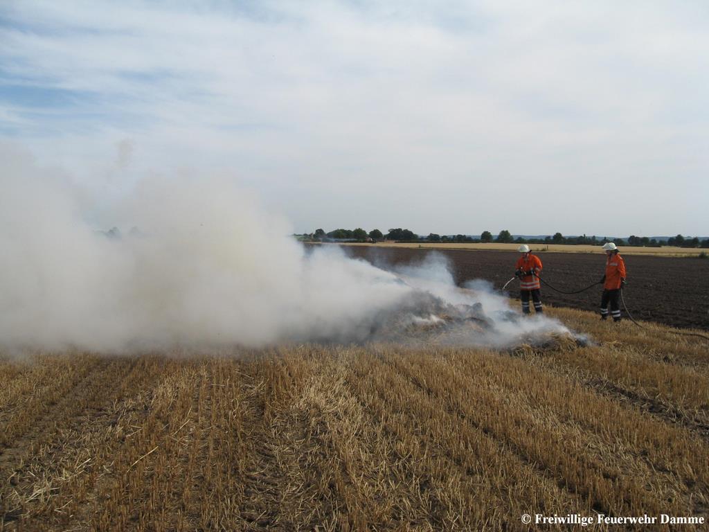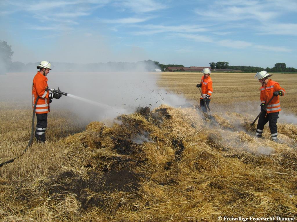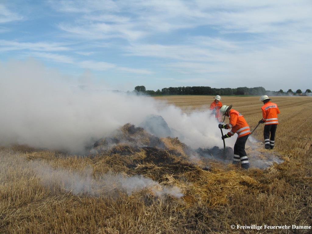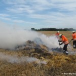 Auf einem abgeernteten Feld zwischen dem Sierhauser Weg und der Straße In der Jeest brannten an zwei Stellen Strohhaufen. Sie wurden von den beiden Tanklöschfahrzeugen mittels des Schnellangriffes abgelöscht. So wurde ein weiteres Ausbreiten des Feuers verhindert.