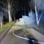Beim Eintreffen der Ersten Kräfte stand allerdings ein PKW auf der Straße zu den Klünen in Vollbrand. Von einem Trupp unter Atemschutz wurde der brennende PKW zügig mit Schaum abgelöscht.