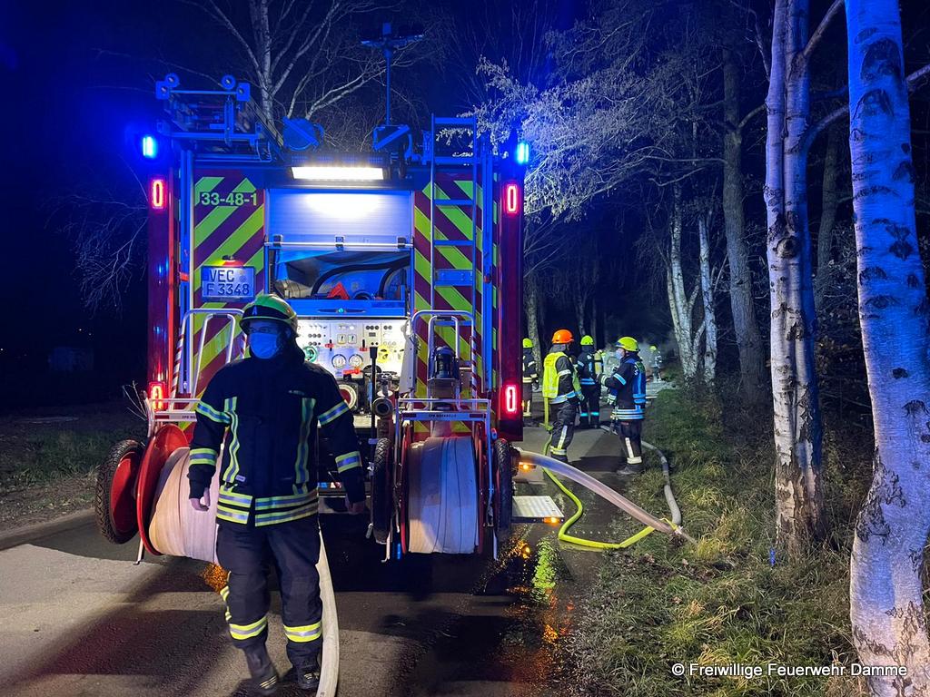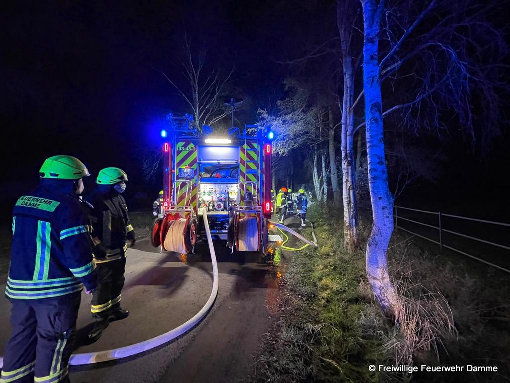 Im Einsatz: PKW Stv. OrtsBM, HLF 20, TLF 20/40 SL, ELW 1, MTF, RTW 1 Malteser Damme, Polizei Damme.