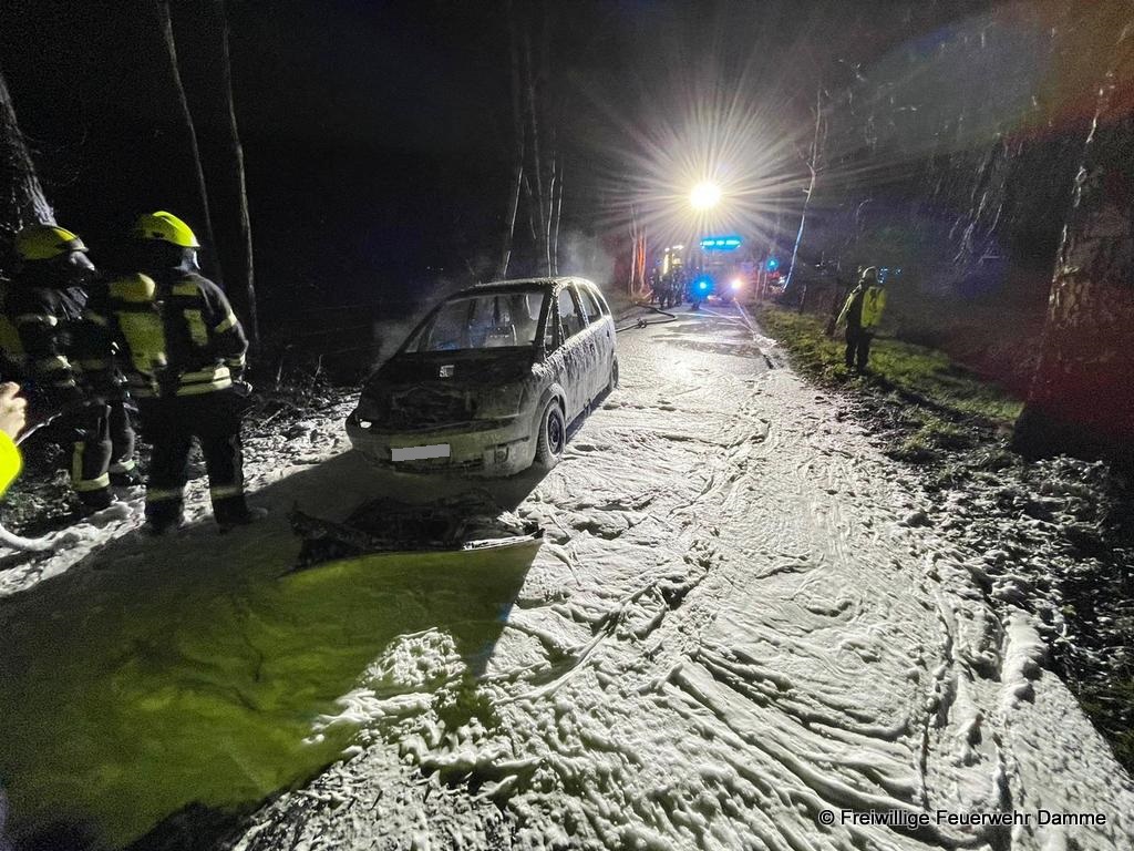 Um 07:01 wurde die Feuerwehr Damme zu einem PKW Brand auf der Straßen Zu den Klünen in Reselage alarmiert.