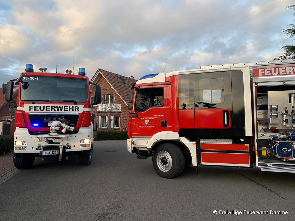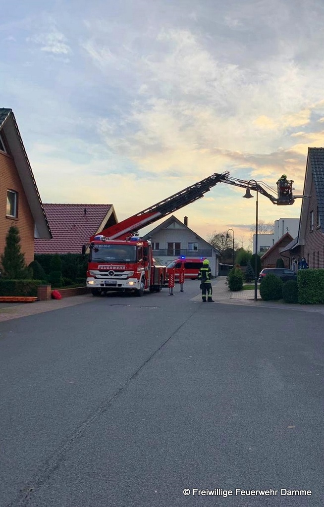 Um 14:56 wurde die Drehleitereinheit der Feuerwehr Damme, zusammen mit der Feuerwehr Neuenkirchen, zu einer Personenbergung in Neuenkirchen alarmiert.