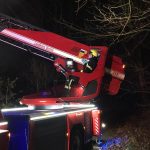 Beim Eintreffen der ersten Kräfte schlugen die Flammen gut sichtbar aus dem Schornstein. Die Aufgabe der Feuerwehr Damme bestand darin, zusammen mit einem Schornsteinfeger, den Kamin von der Drehleiter aus zu kehren.