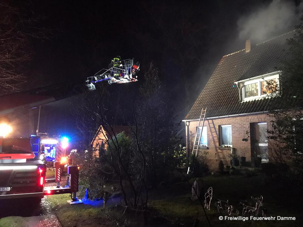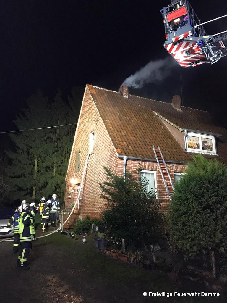 Um 22:14 wurde die Feuerwehr Damme, mit ihrer Drehleitereinheit, zu einer nachbarschaftlichen Löschhilfe in Neuenkirchen alarmiert. Bereits um 21:46 war die Feuerwehr Neuenkirchen zu einem Schornsteinbrand an einem Wohnhaus in Grapperhausen, Grapperhauser Mark, alarmiert worden.