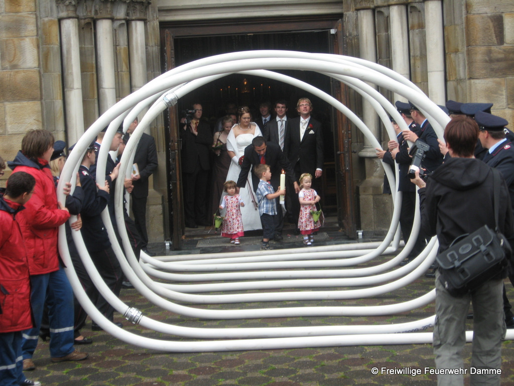 Am 08.08.09 haben unser stv. Stadtbrandmeister Jens Varenau und Michaela Rosemeyer in der St. Viktor Kirche zu Damme geheiratet. Aus diesem Grund wurde von den Kameraden der Feuerwehr Damme sowie der Jugendfeuerwehr Damme vor der Kirche Spalier gestanden. Außerdem wurde ihnen der St. Florian überreicht.