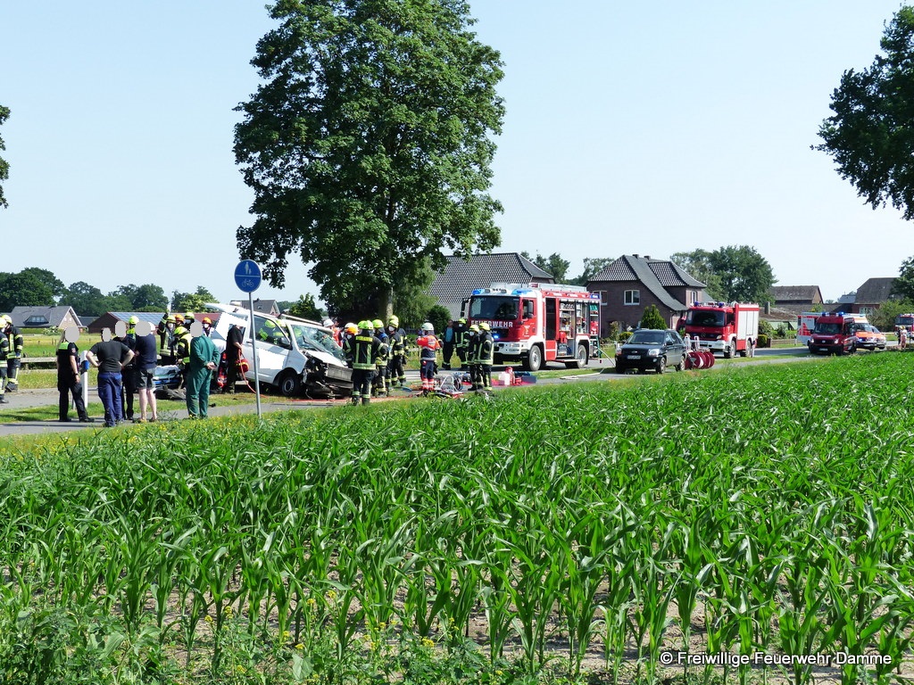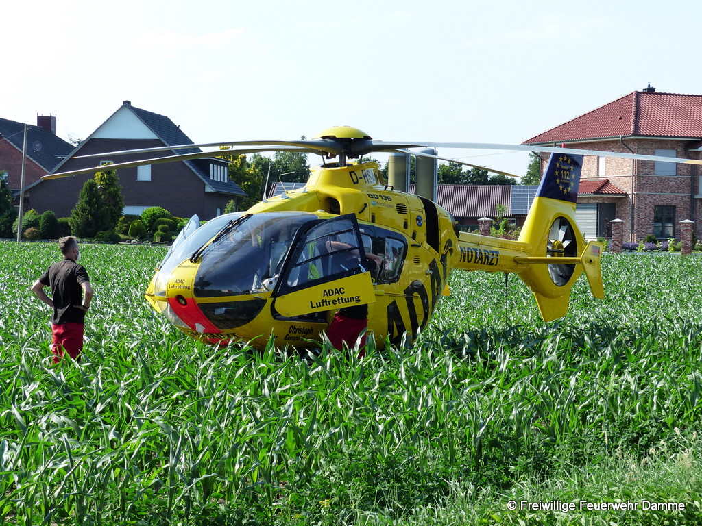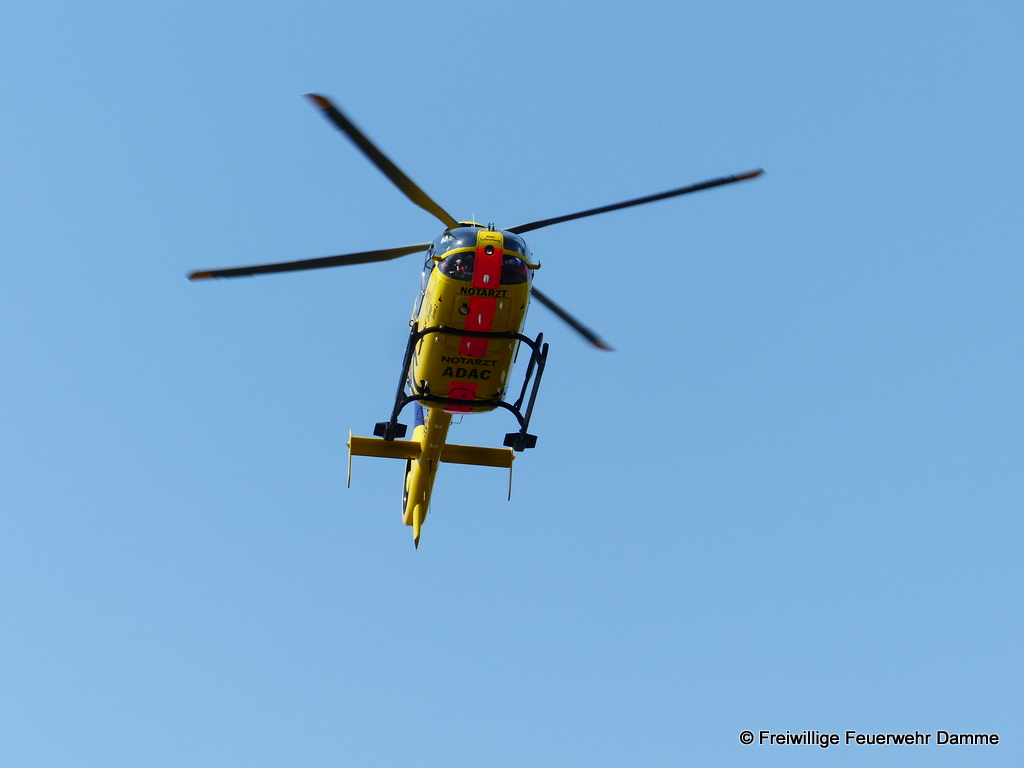 Im Einsatz: PKW Stv. OrtsBM, PKW Stv. StadtBM, HLF 20, TLF 16/25, ELW 1, FF Osterfeine, FF Borringhausen, RTW 1 Malteser Damme, RTW 2 Malteser Damme, NEF Malteser Damme, C-Dienst Malteser LK Vechta, RTH Christoph Euro 2, Polizei Damme.