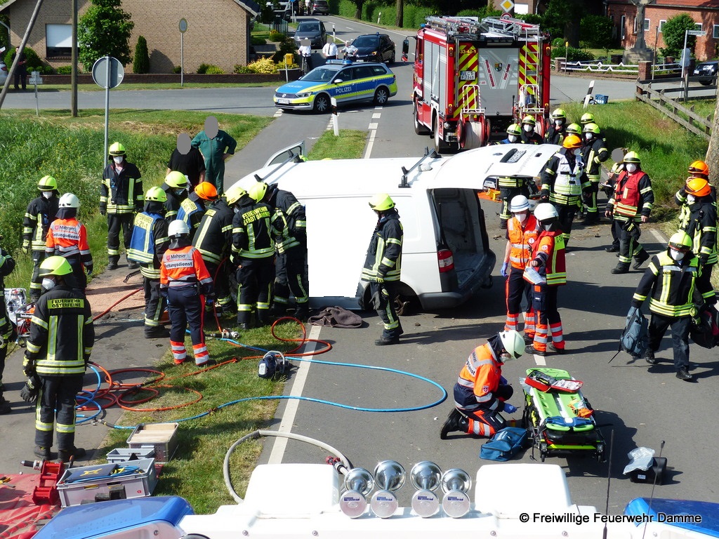 Um 16:38 wurde die Feuerwehr Damme, zusammen mit der Feuerwehr Osterfeine, zu einem schweren Verkehrsunfall mit eingeklemmten Personen in Osterfeine alarmiert.