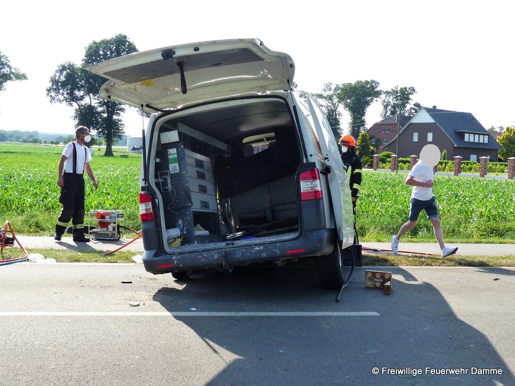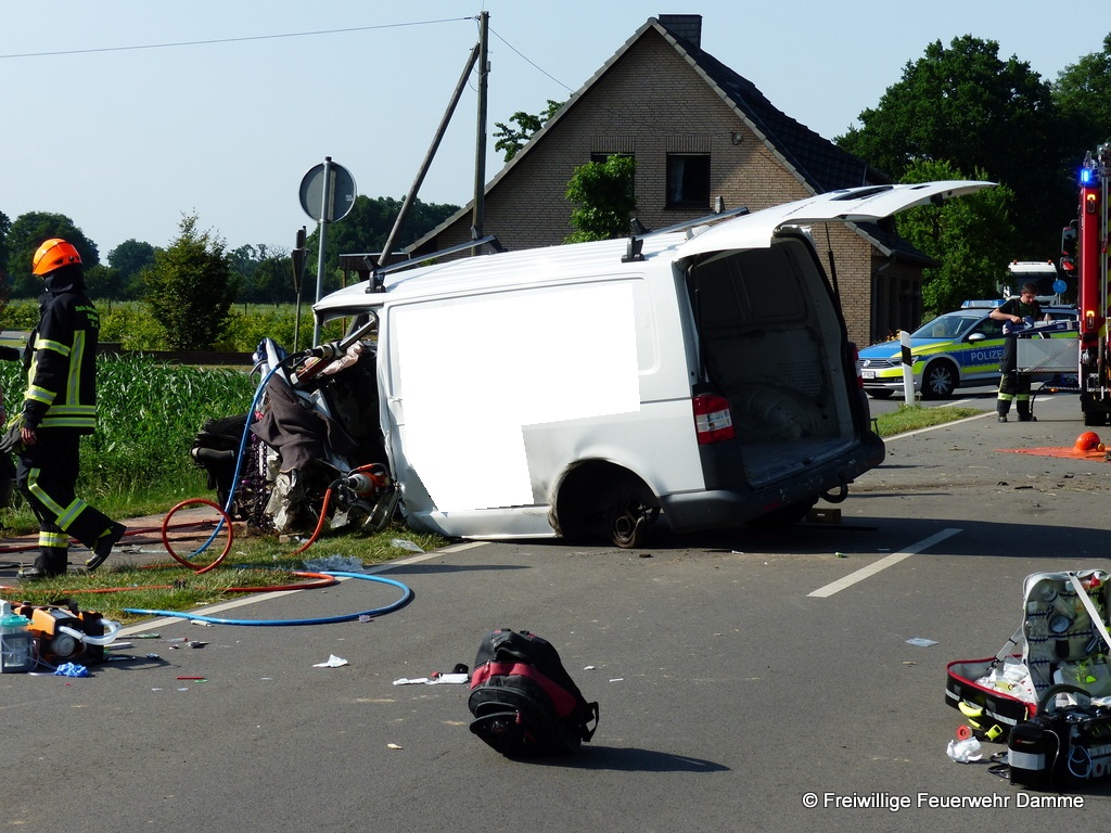 Auf der Lehmdener Straße in Osterfeine war ein Kleintransporter von der Strasse abgekommen und gegen einen Baum geprallt. Durch die Wucht des Aufpralles wurde der Transporter auf die gegenüberliegende Fahrbahnseite geschleudert.