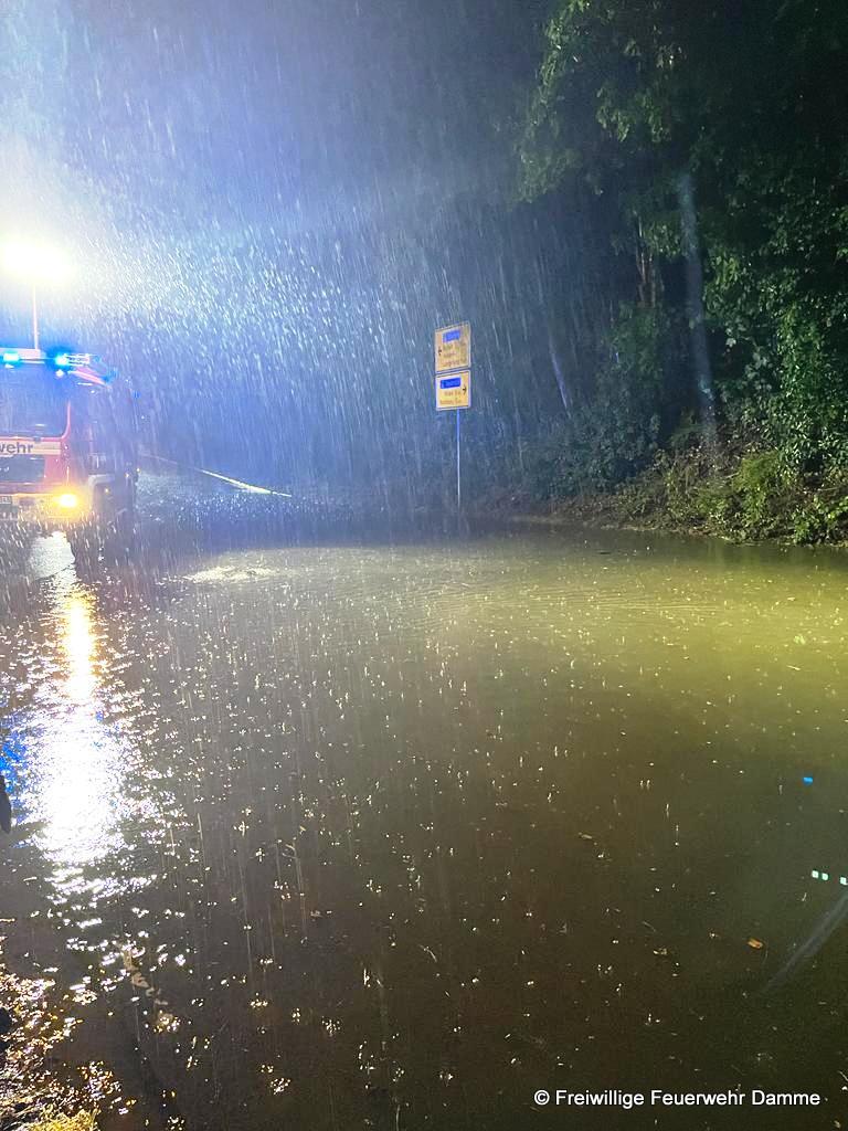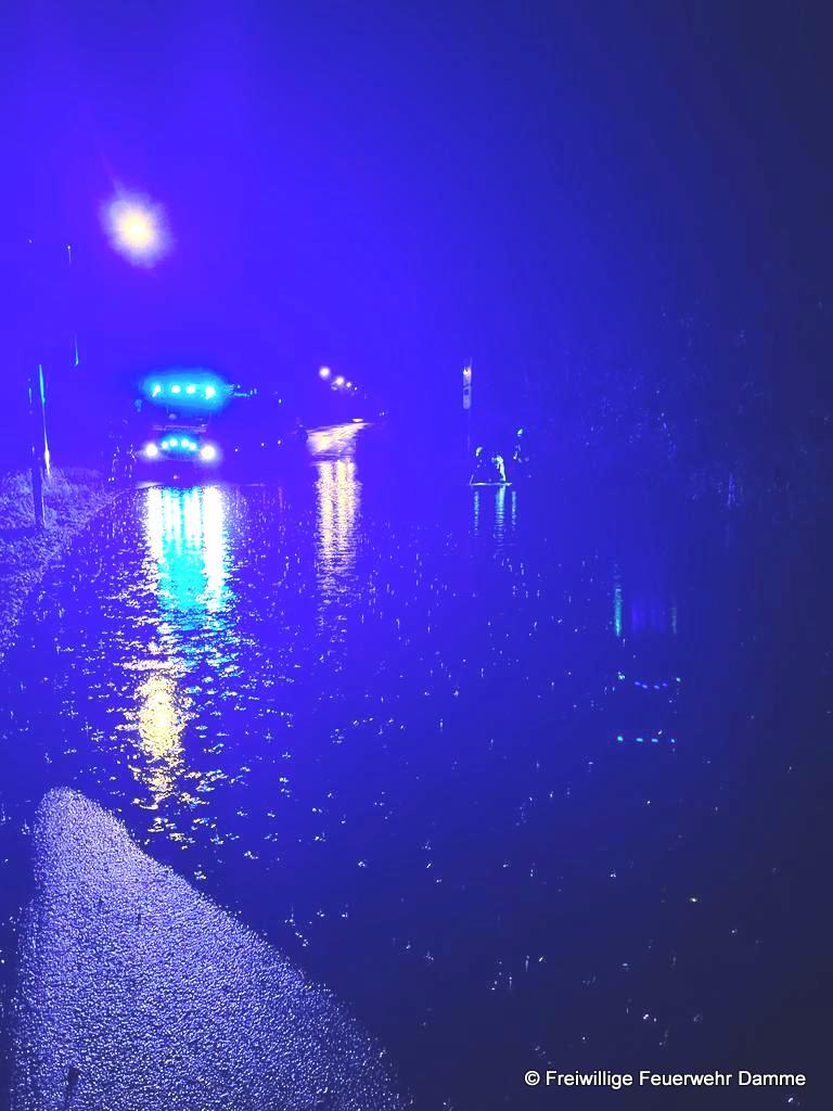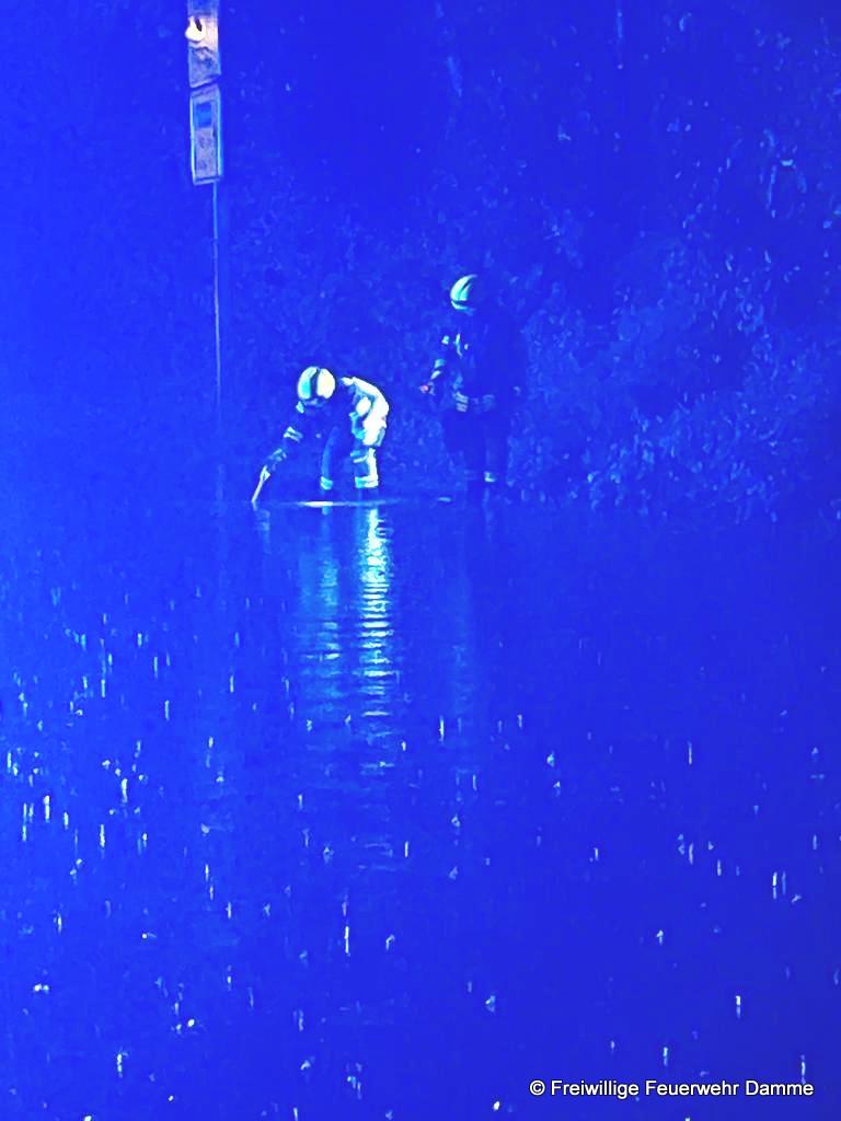 Die Kameraden waren vom letzten Einsatz gerade zu Hause, da wurde die Feuerwehr Damme um 07:32 abermals zu einer technische Hilfeleistung wegen erneutem Starkregens alarmiert.