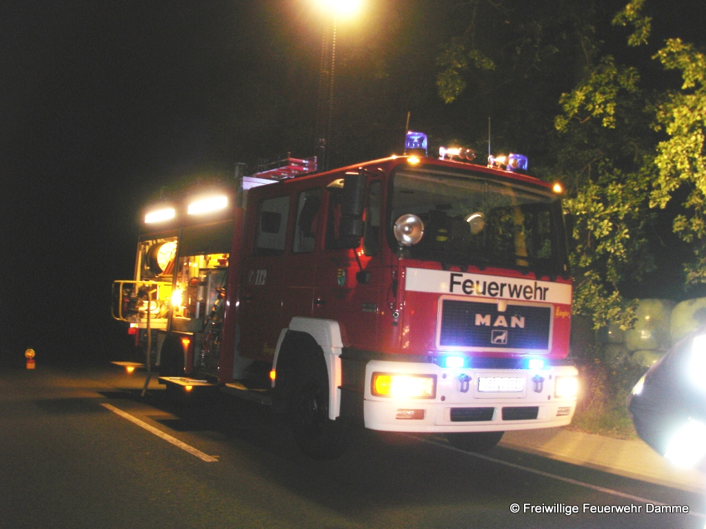 Im Einsatz: TLF 16/25, LF 16 TS, RTW 1 Malteser Damme, NEF Malteser Damme, Polizei Damme