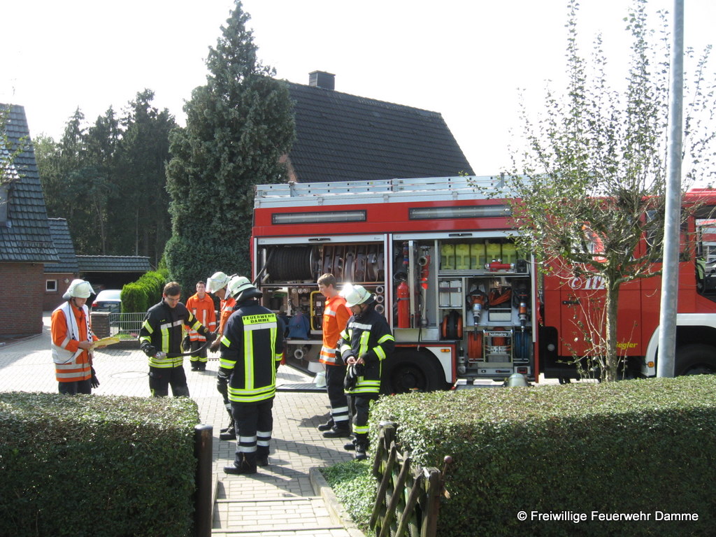 Im Einsatz: TLF 16/ 25, LF 16 TS, DLK 23/ 12, TLF 20/ 40 SL, Polizei Damme.