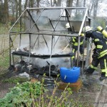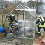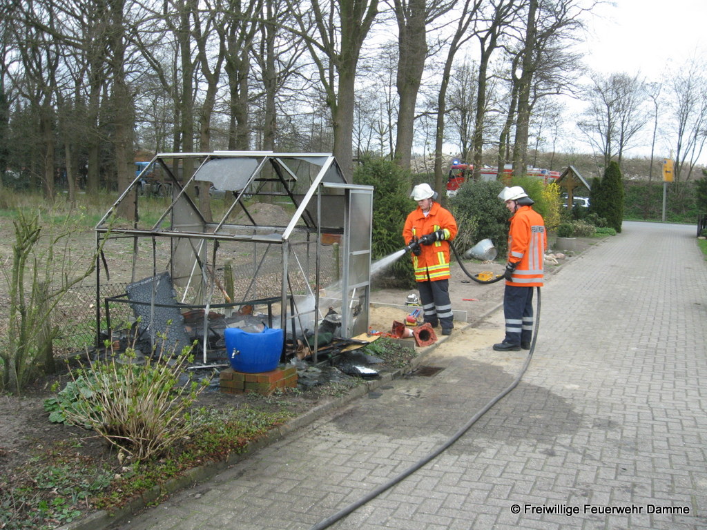 Um 14:56 wurde die Feuerwehr Damme zu einem Brandeinsatz in Neuenwalde alarmiert. Im Garten eines Wohnhauses an der Hufeisenstr. war ein Gewächshaus aus unbekannter Ursache in Brand geraten. Beim Eintreffen der ersten Kräfte brannte das ca. 2x 2 Meter große Gewächshaus bereits in voller Ausdehnung. Es konnte von einem Trupp unter Atemschutz rasch gelöscht werden. An dem Häuschen entstand Totalschaden.