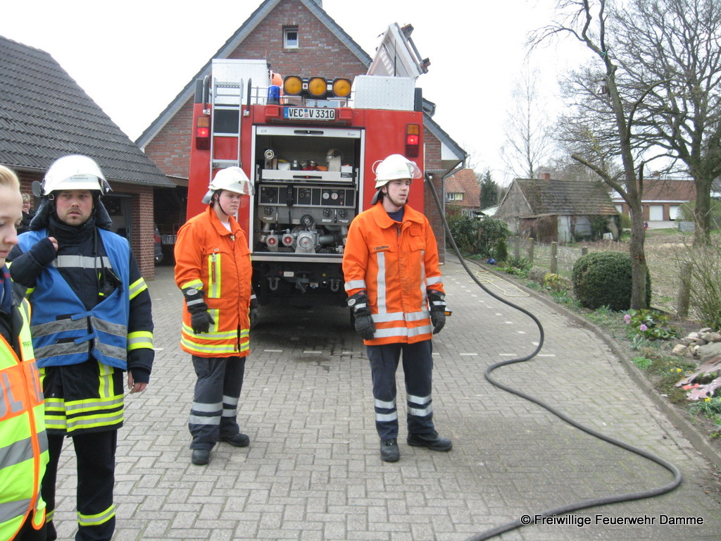 Im Einsatz: TLF 16/25, LF 16 TS, TLF 20/ 40 SL, DLK 23/ 12, ELW, RTW 1 Malteser Damme, Polizei Damme