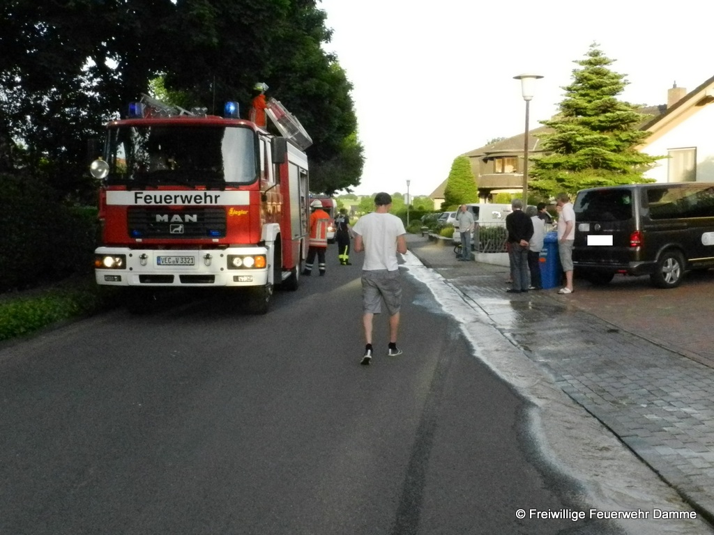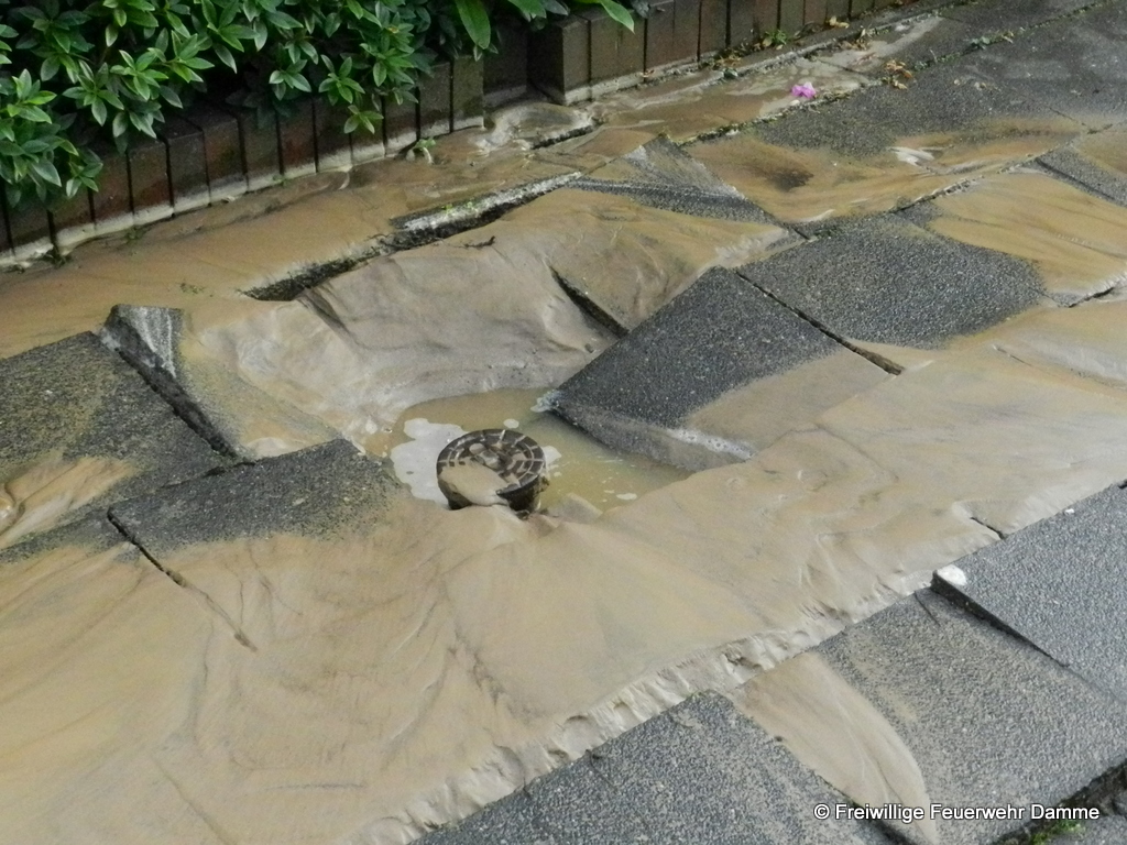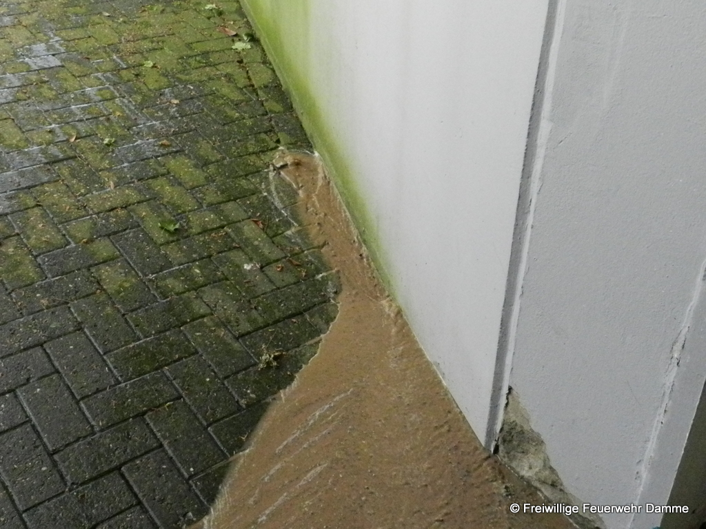 Um 20:09 wurde die Feuerwehr Damme zu einer technischen Hilfeleistung am Vogelsangweg alarmiert. Dort war es zu einem Wasserrorbruch im Gehweg gekommen. Das Wasser suchte sich unterirdisch seinen weg und trat in der Auffahrt einer Tiefgarage eines Wohnhauses aus. Dadurch wurde der gesamte Keller überflutet. Da er teilweise als Lagerraum eines Betriebes genutzt wurde, pumpte die Feuerwehr den Keller wieder leer. Vorher wurde das defekte Wasserrohr noch vom OOWV abgeschiebert.
