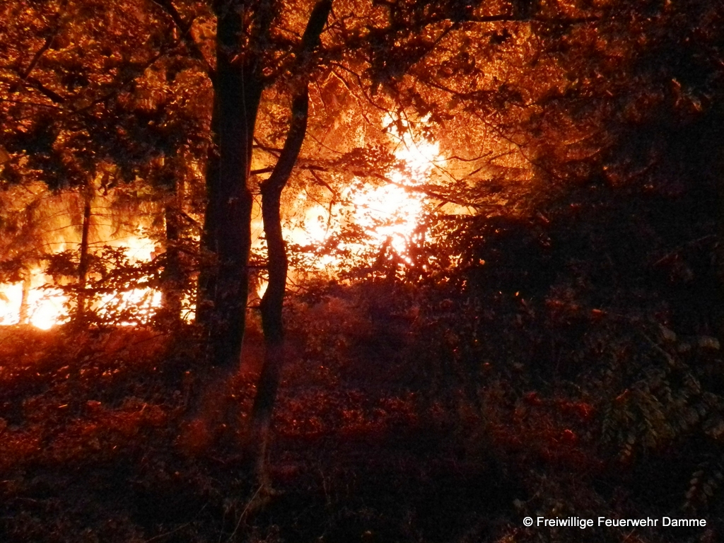 Im Einsatz: PKW 33-98, PKW 33-97, TLF 16/ 25, LF 16 TS, TLF 20/ 40 SL, ELW, MTF mit Materialanhänger, FF Neuenkirchen, FF Vörden, FF Holdorf, FF Fladderlohausen, FF Borringhausen, FF Steinfeld, RTW 1 Malteser Damme, Polizei Damme
