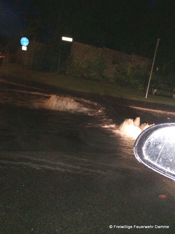 Gerade erst wieder eingerückt vom vorherigen Einsatz, rückten die Kameraden um 22:50 erneut zu einer technischen Hilfeleistung aus. Nach einem heftigen Gewitterschauer war der Westring in Höhe des Restaurants Hellas überflutet. Die Feuerwehr reinigte die Kanaleinläufe, damit das Wasser abfließen konnte.