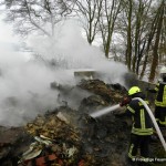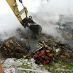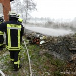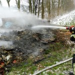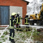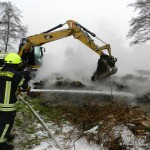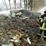 Die letzten Kameraden hatten das Feuerwehrhaus noch nicht wieder verlassen, da wurde die Feuerwehr Damme um 12:40 Uhr erneut alarmiert. Diesmal zu einem Brandeinsatz, In der Linnert in Greven. Neben einem Schweinestall war ein größerer Abfallhaufen in Brand geraten. Durch das Feuer kam es zu einer erheblichen Rauchentwicklung, die sich bis Rottinghausen hinzog. Das Feuer wurde von einem Trupp unter Atemschutz abgelöscht. Um an tiefer liegende Brandnester zu gelangen, wurde der Haufen von einem Bagger mehrfach umgeschichtet und auseinandergezogen. Die restlichen Brandnester wurden mit Wasser und Netzmittel gezielt abgelöscht.