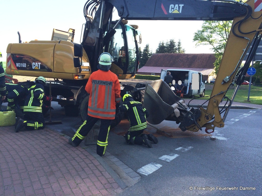 Zu einer technischen Hilfeleistung wurde die Feuerwehr Damme um 17:53 alarmiert. Auf der Neuenwalderstraße, kurz vor der Aufmündung zur Vördenerstraße war aus einem Bagger Hydrauliköl ausgelaufen. Die Fläche von ca. 2 qm wurde von den Einsatzkräften mittels Ölbindemittel aufgenommen. Zudem wurden noch Warnschilder aufgestellt.