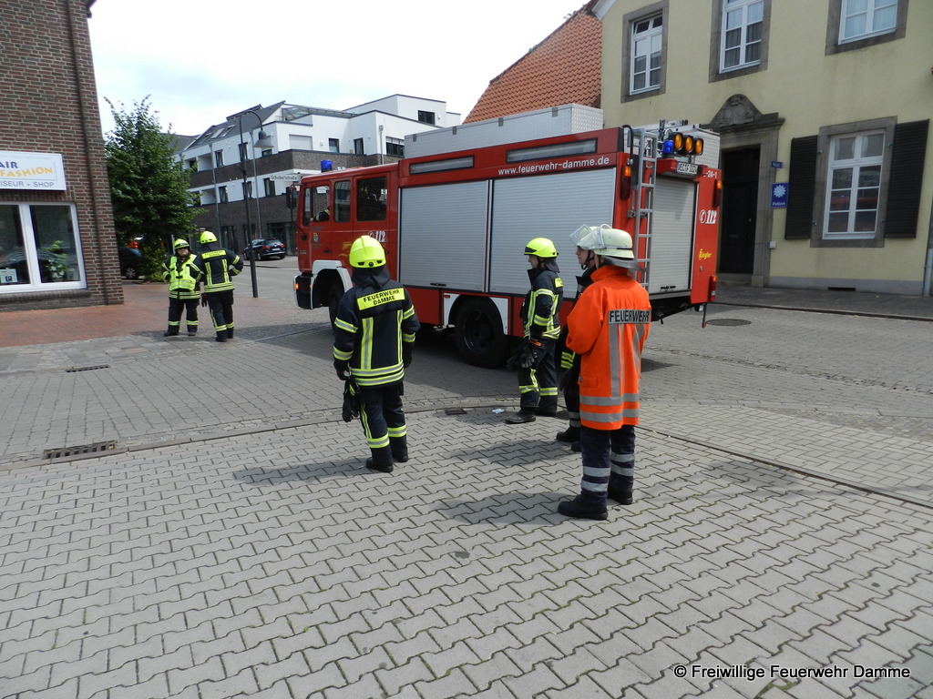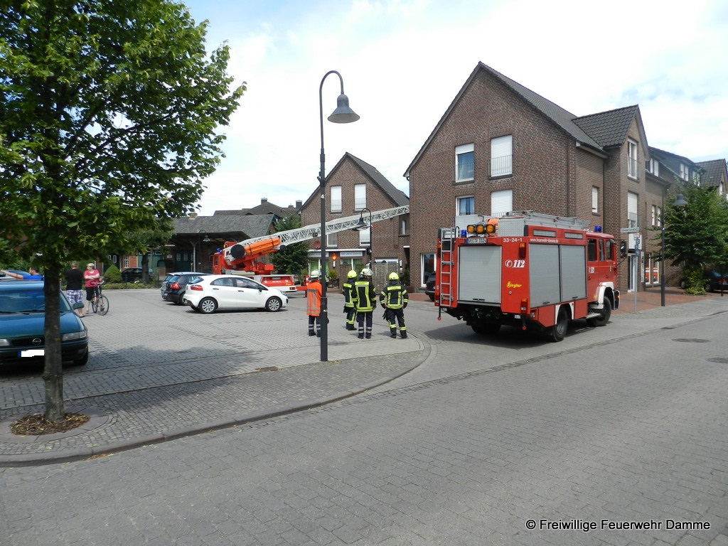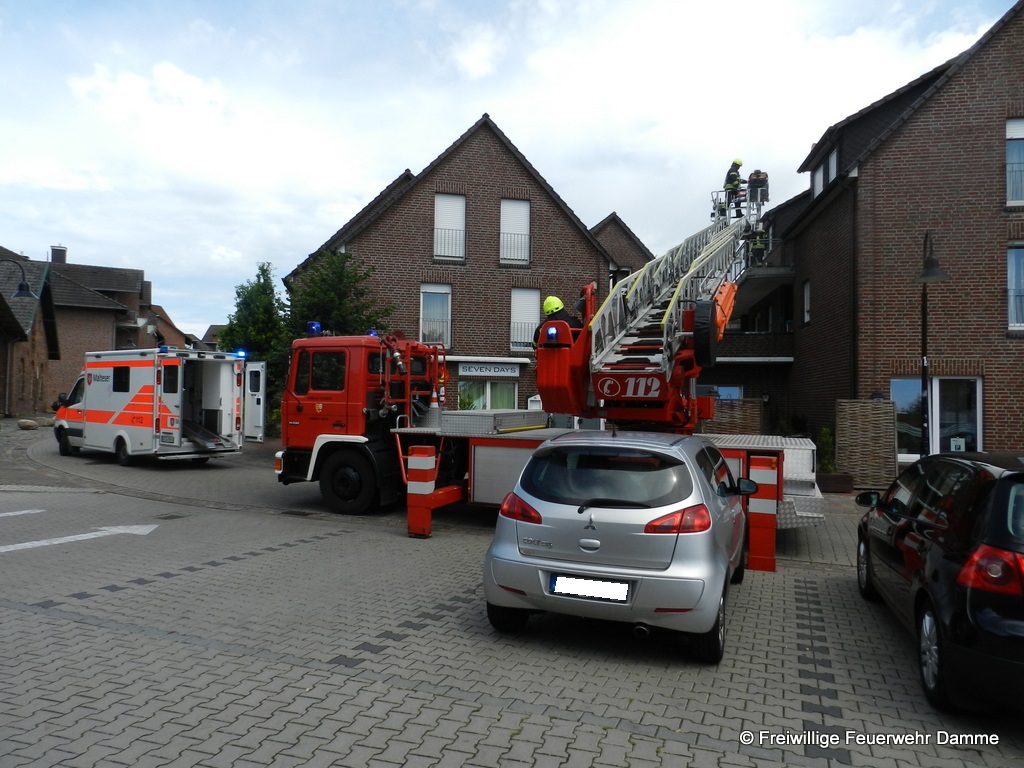 Im Einsatz: PKW OrtsBM, DLK 23/12, TLF 16/ 25, ELW 1, RTW 1 Malteser Damme, NEF Malteser Damme.