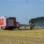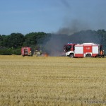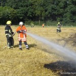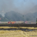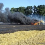 Um 18:21 wurde die Feuerwehr Damme zusammen mit den Feuerwehren Osterfeine und Borringhausen zu einem Traktorbrand mit Strohballenpresse in Borringhausen, Dammer Str. alarmiert. Auf einem abgeernteten Kornfeld war eine Traktorgespann beim pressen von Strohballen in Brand geraten. Das Feuer griff sofort auf das angrenzende Feld und das darauf gelagerte Stroh über. In kürzester Zeit standen mehrere hundert Quadratmeter Feld in Flammen. Da das Feuer auf angrenzende Wohnhäuser, Stallungen und Waldstücke überzugreifen drohte, wurden vom Einsatzleiter sofort zusätzliche Kräfte aus Steinfeld, Vörden, Holdorf und Fladderlohausen nachgefordert. Mit vereinten Kräften konnte das Feuer schließlich unter Kontrolle gebracht und gelöscht werden. Ebenso konnte ein Übergreifen auf angrenzende Bebauungen verhindert werden.